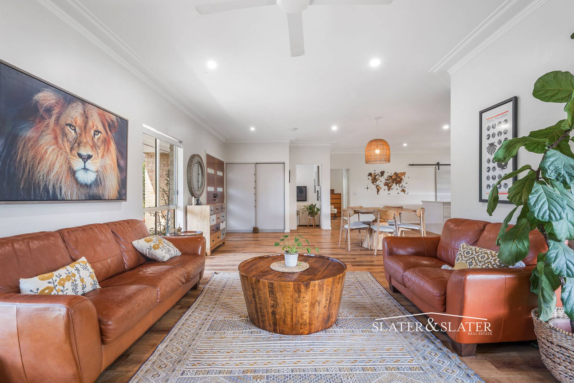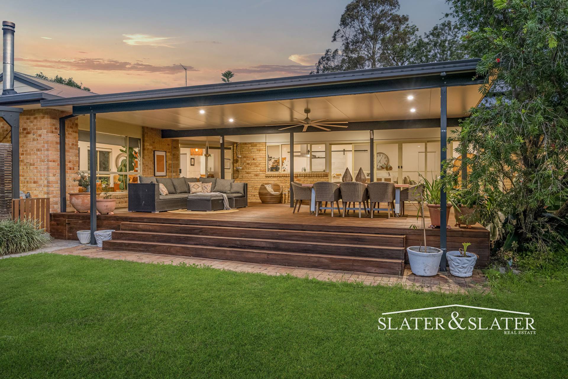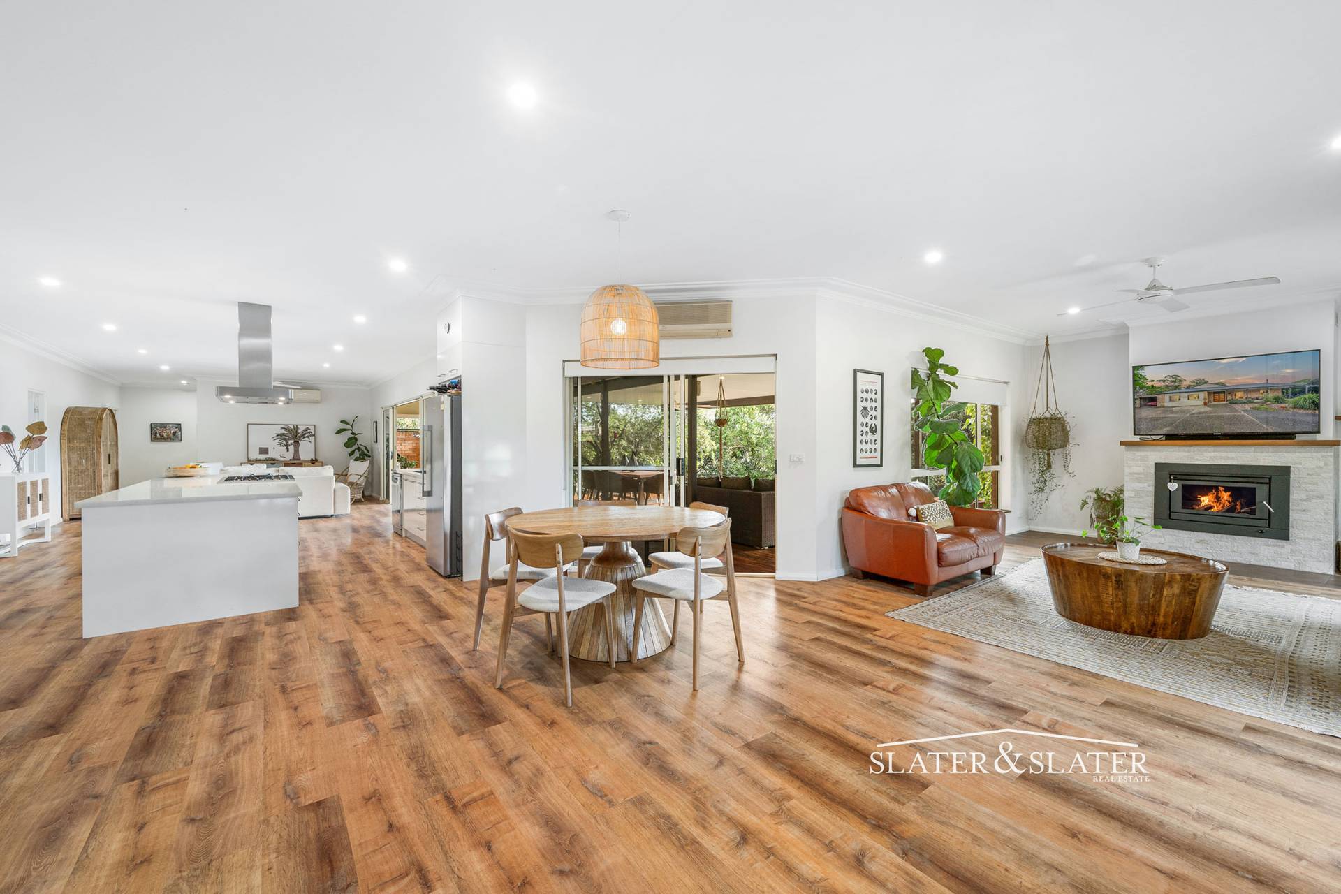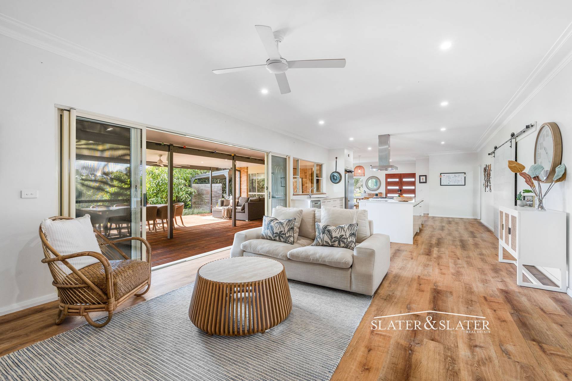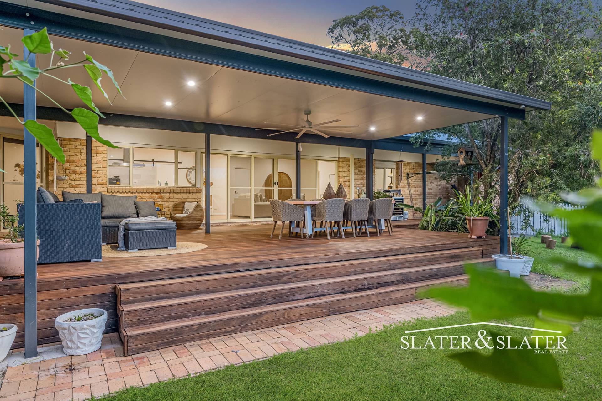 The home impresses with its substantial open plan design that flows out onto a substantial covered verandah that overlooks the private gardens.