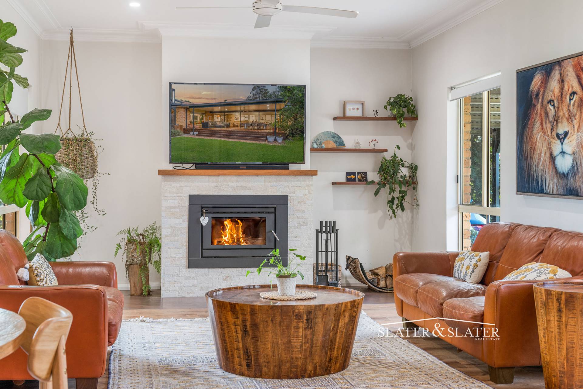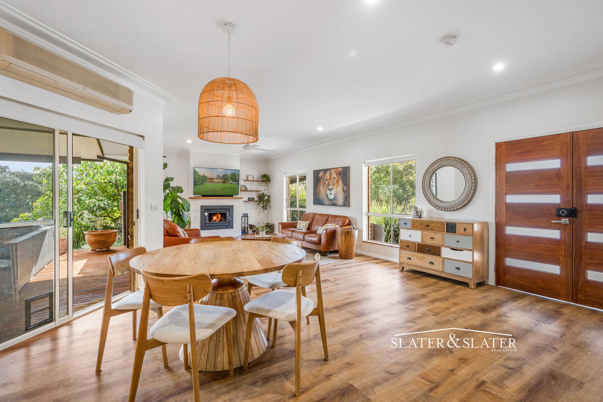 The lounge has an inbuilt wood heater and there are two air conditioners to provide year-round comfort.