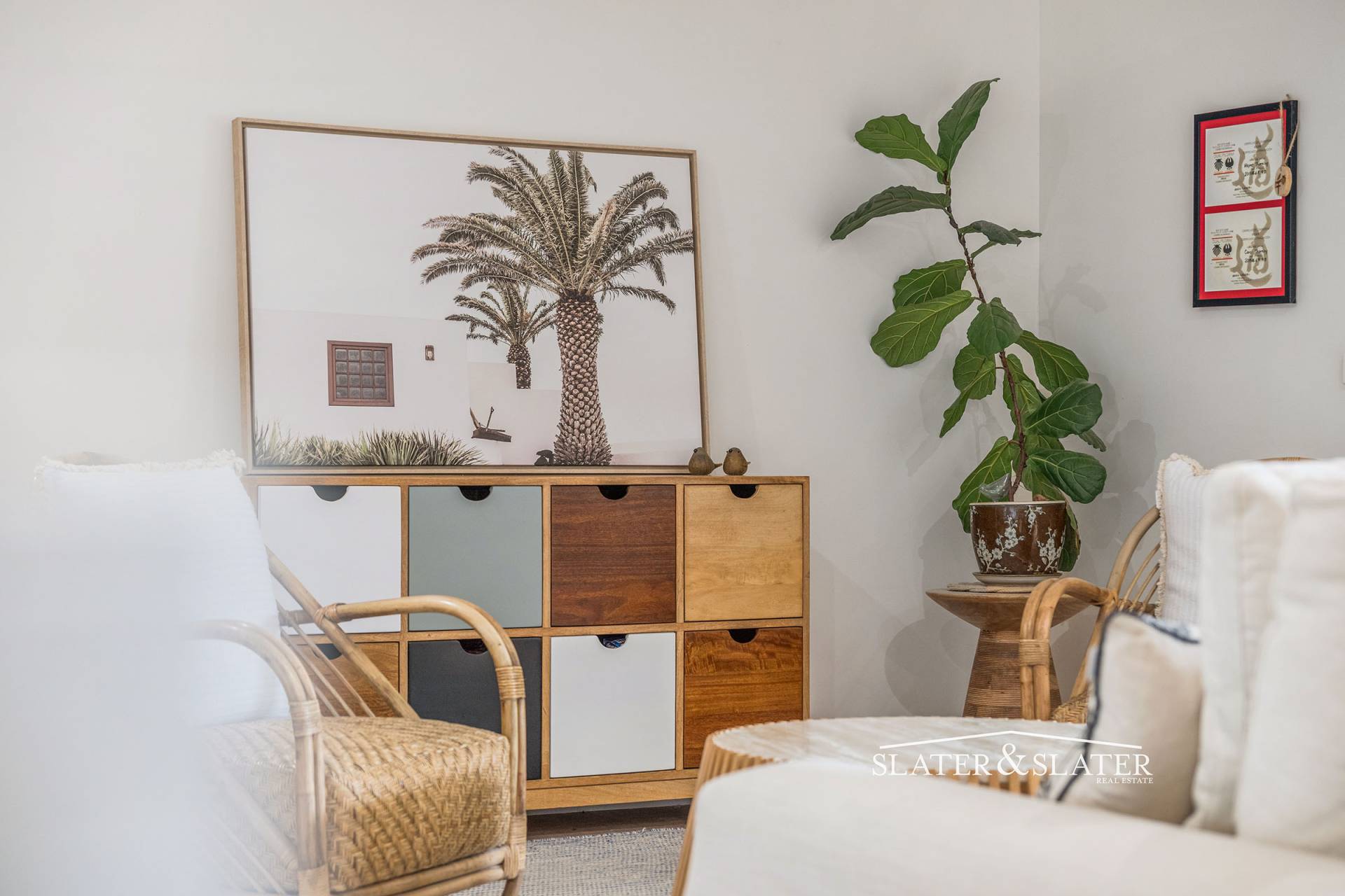 The primary bedroom has a stylish ensuite bathroom, walk-through wardrobe and access to a private rear courtyard. The vast second bedroom has been created through conversion of the former double garage and enjoys the dimensions to create a versatile space with its own lounge area and large set of built-in wardrobes.