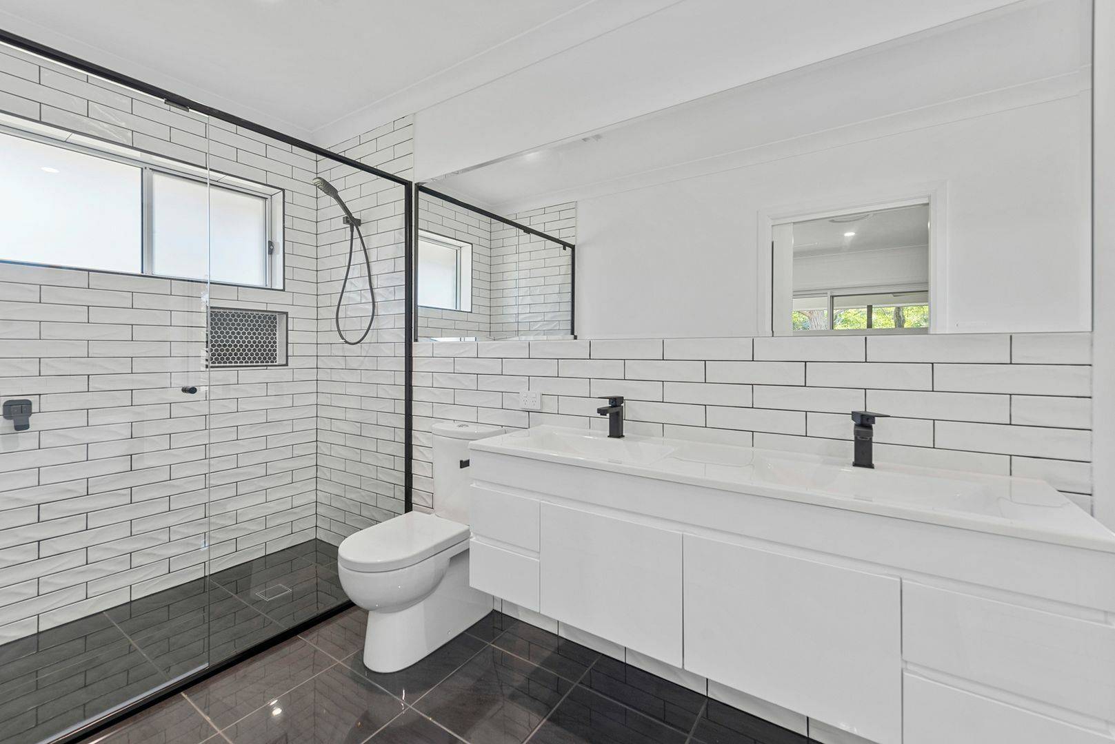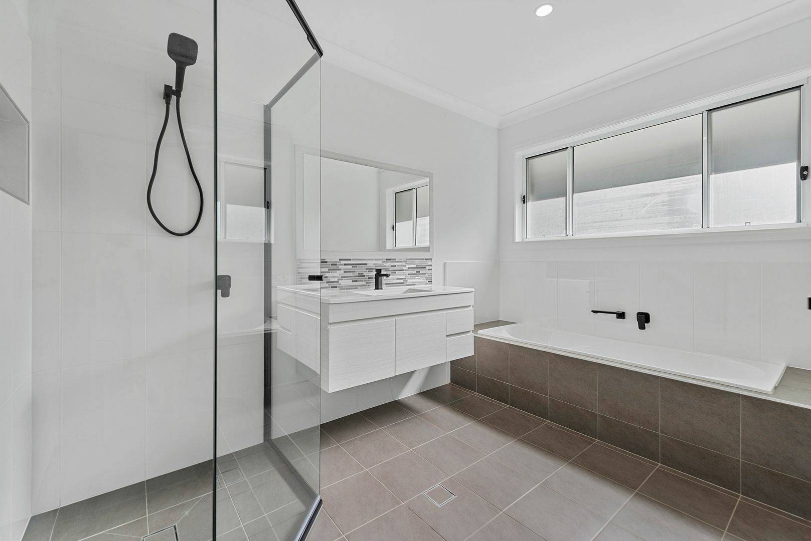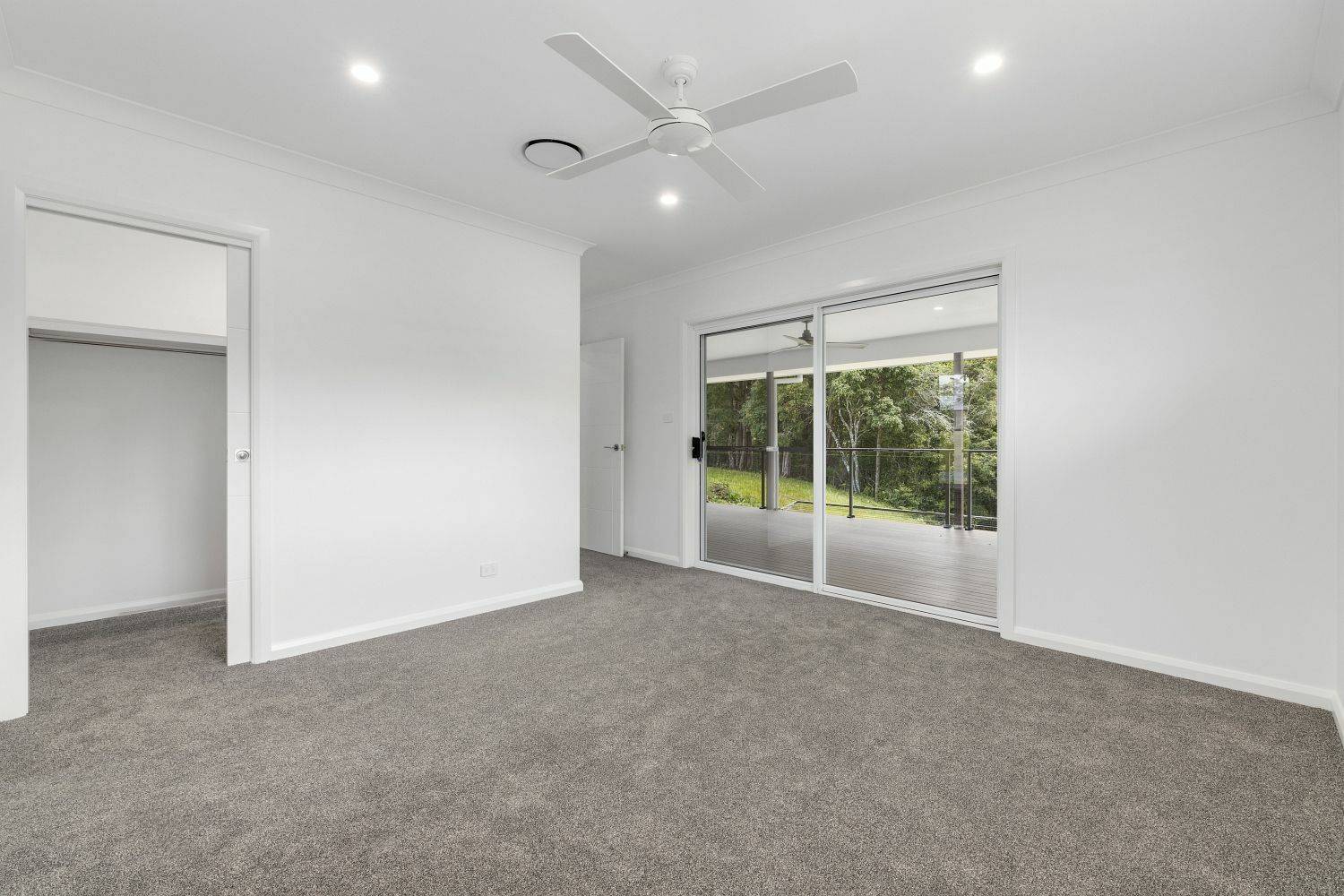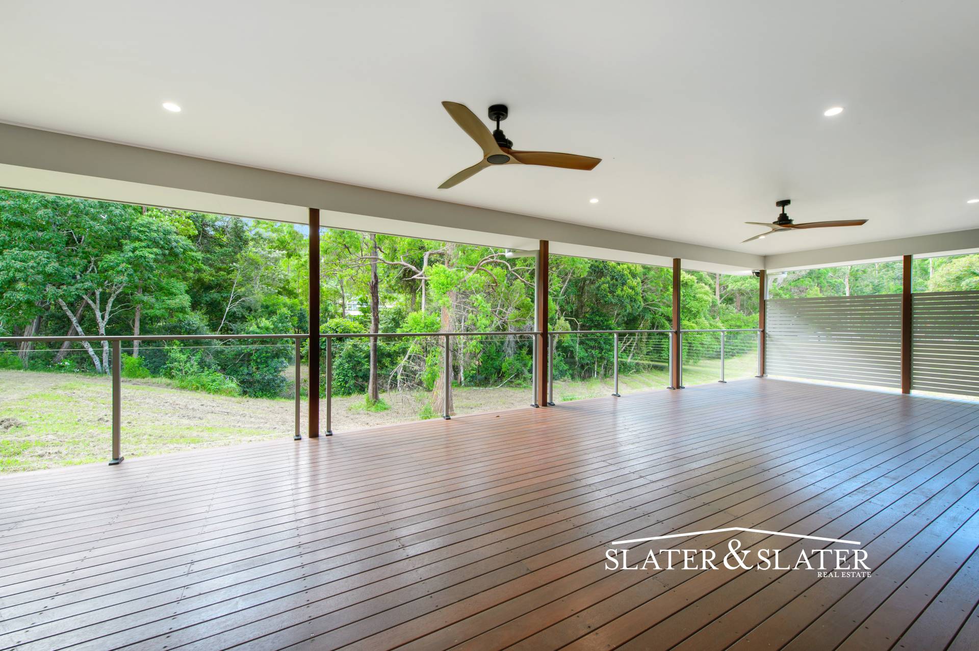 The home's floorplan features a light-filled and expansive living, kitchen and dining zone with stacker doors that extend onto the vast rear deck - perfect for indoor/outdoor living and entertaining. The rear deck is secured with glass panelling to maximise the bushland surrounding, features modern timber ceiling fans and is fitted with a gas outlet to connect your BBQ.
