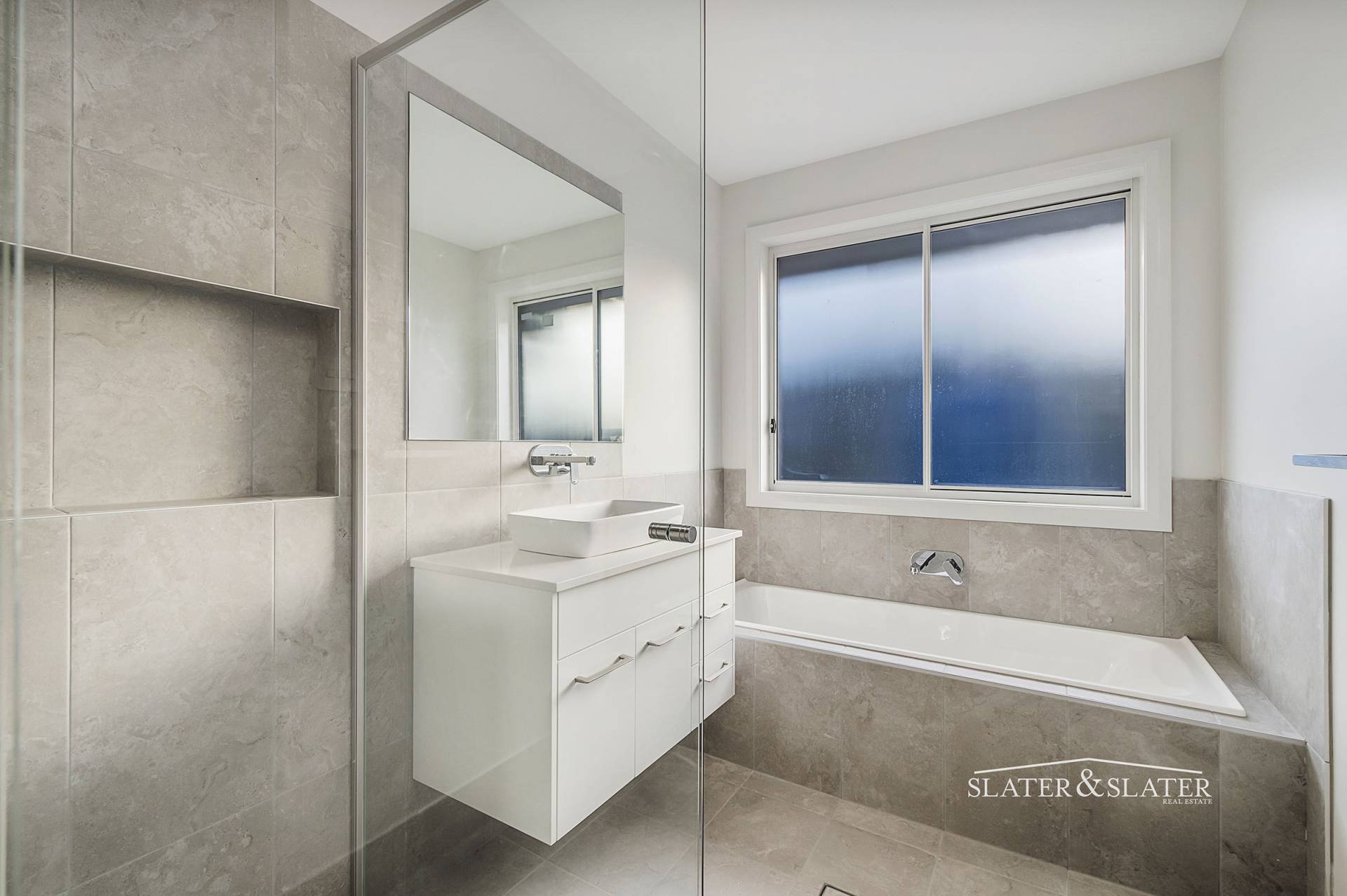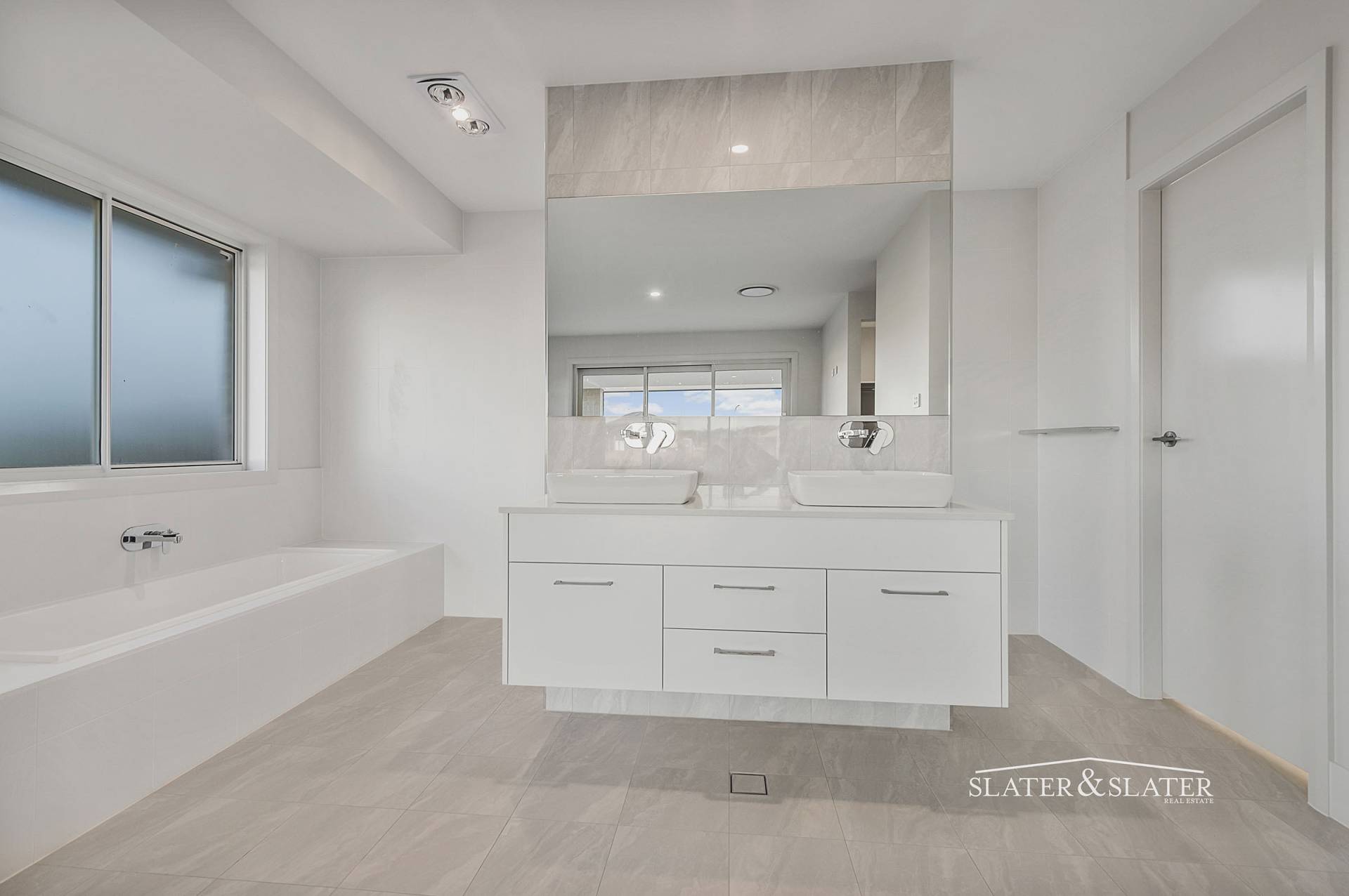 The main bedroom enjoys two walk-in wardrobes, ensuite with shower and freestanding bath and also connects to the alfresco area via sliding doors.