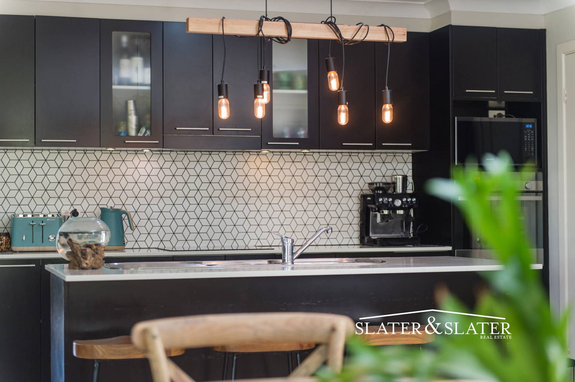 The home enjoys established easy care landscaped gardens with a fire pit area at the rear and the land is fully fenced for family pets.