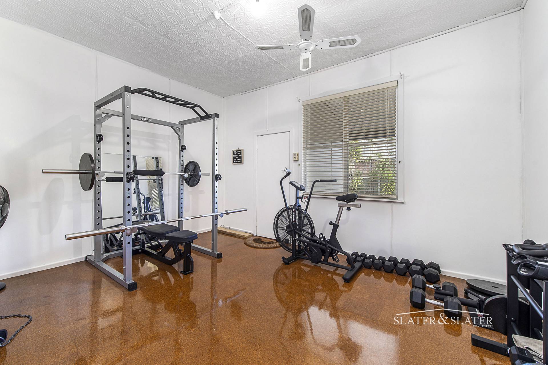 The three bedrooms are all generously sized with the primary bedroom offering built-in wardrobes and one of the other bedrooms currently used as an indoor gym space.