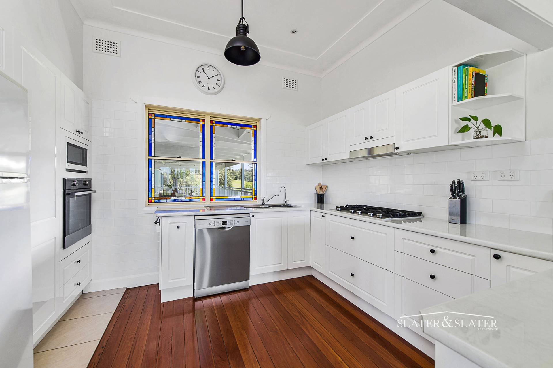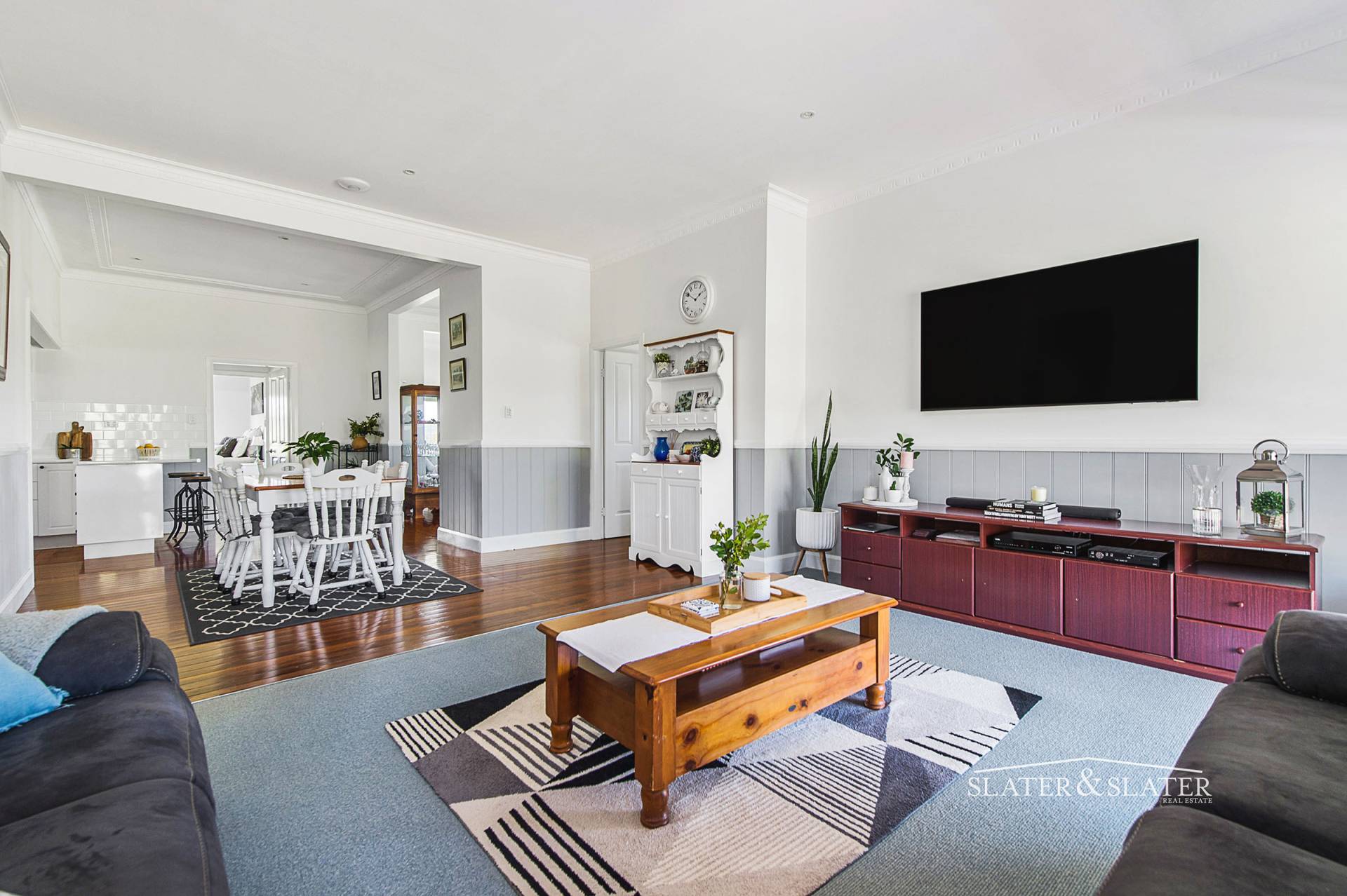 The high ceilings and abundant natural light showcase the gleaming timber floorboards, period features and picturesque outlook across the property.