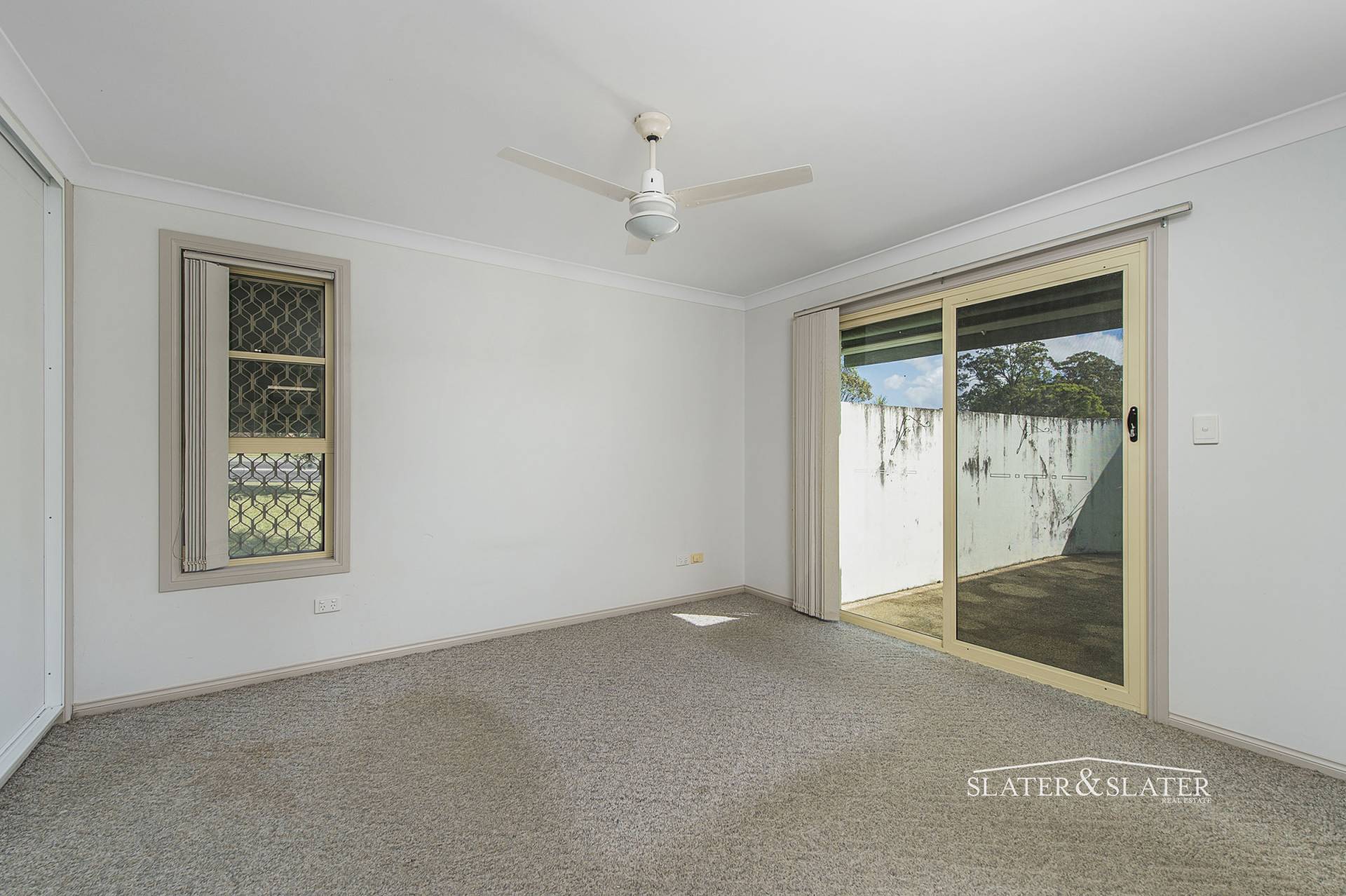 The main bedroom with ceiling fan has an ensuite with shower and built-in wardrobes and also has sliding doors to the courtyard.