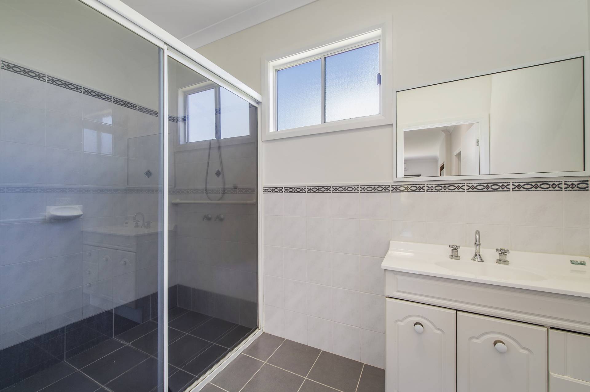The main bathroom has a shower and vanity with a separate toilet and underneath the home is the renovated laundry and second toilet.