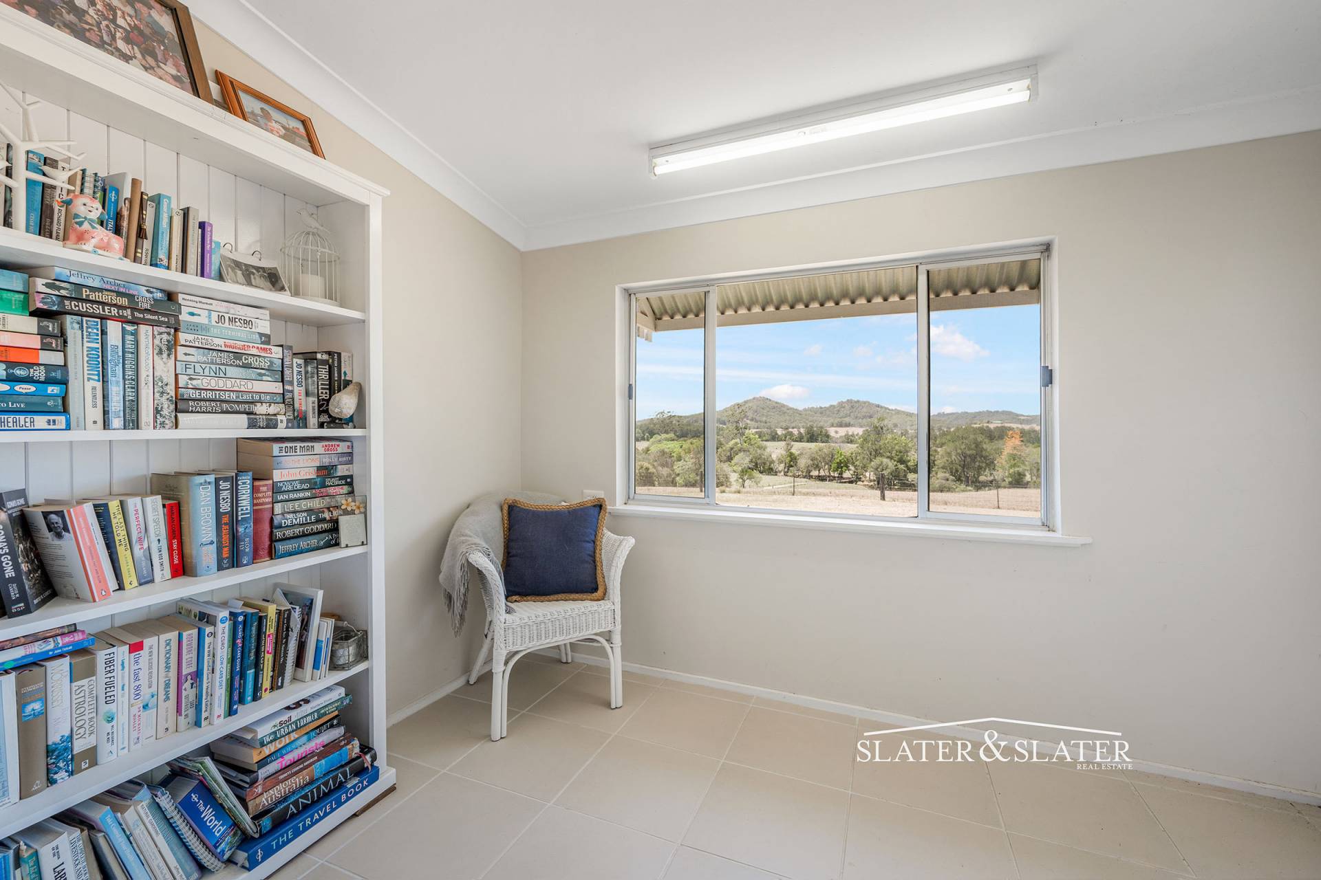 The main bedroom enjoys the morning sunlight and offers beautiful views towards the valley, complete with built-in robes. There are two other bedrooms, one with its own sunroom/library and the third is currently configured as a study area. All the bedrooms are serviced by the attractive main bathroom which was given modern consideration when it was updated 4 years ago.