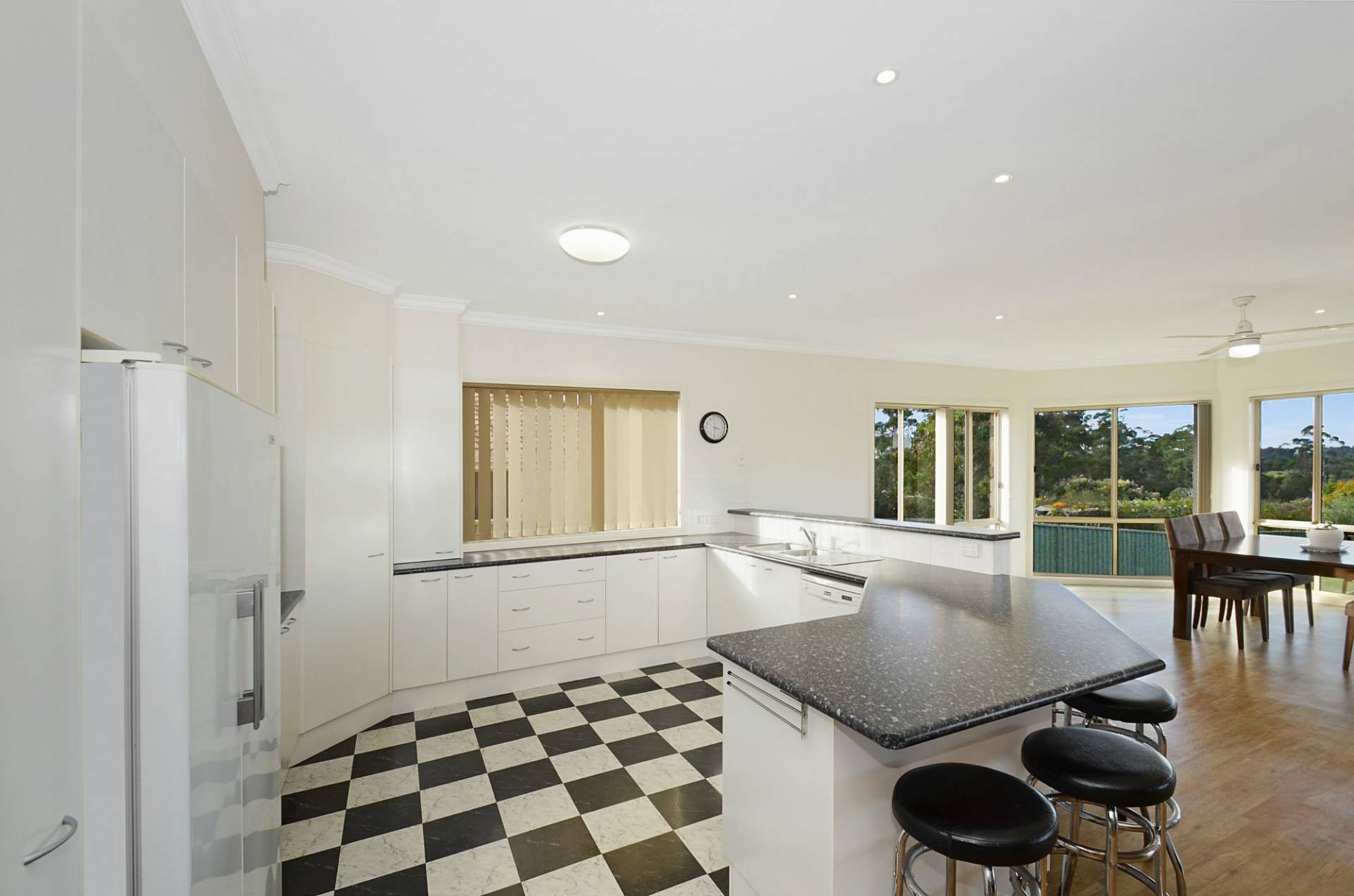 An impressive entranceway leads to double front doors that provide a sense of arrival as you enter the home revealing expansive dimensions throughout the entire floorplan. The light, bright and airy open plan dining, kitchen and lounge zone is vast and enjoys views over the three acres through multiple windows and two sets of sliding doors that lead out to an undercover entertaining area.
