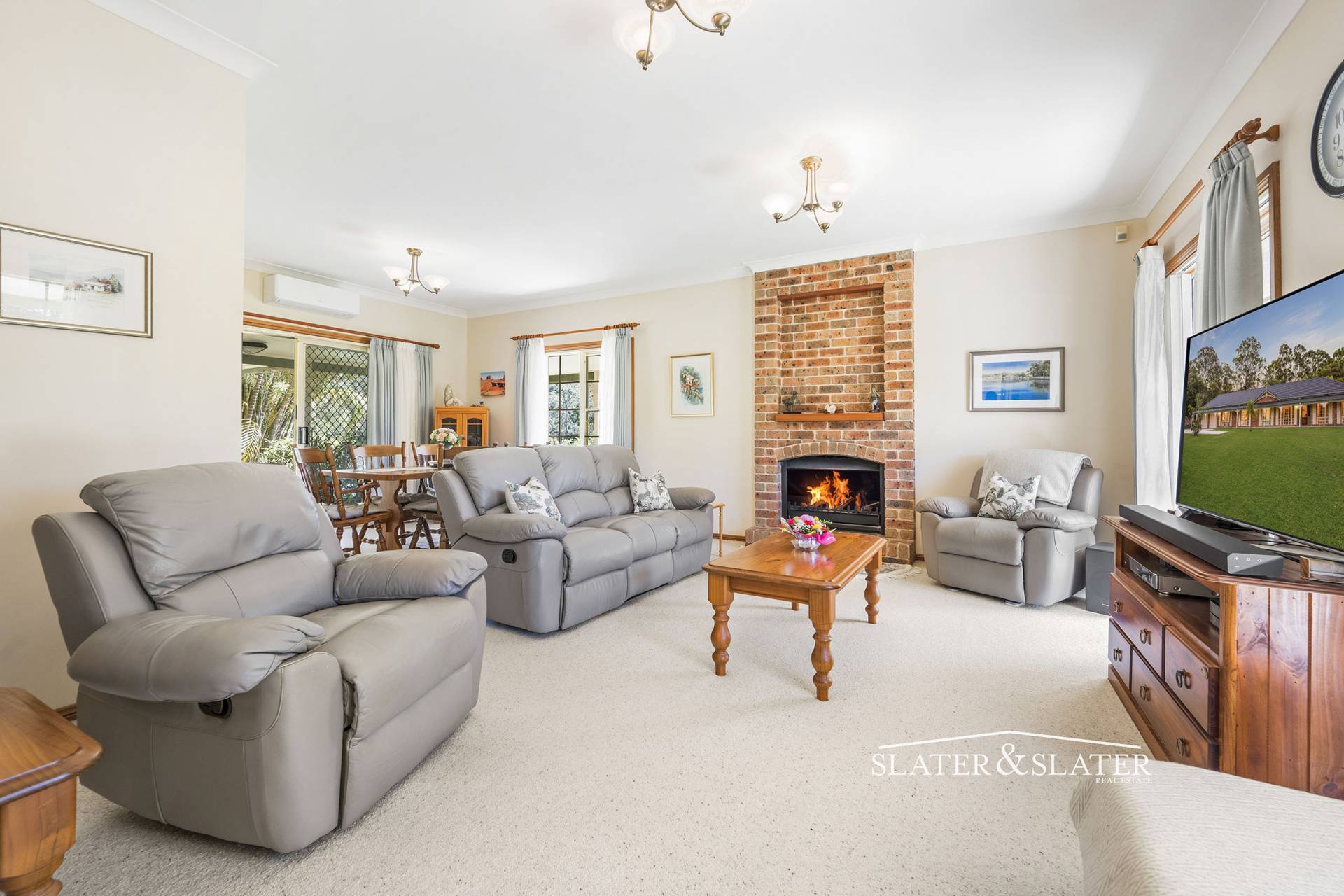 Inside, the home is in immaculate condition and designed for family living. A spacious main lounge and formal dining area features a cosy wood fire and air conditioning, creating a comfortable space year-round. This area flows through to the Tasmanian Oak kitchen with a walk-in pantry, family dining, and second living room, which open out to an undercover outdoor entertaining space, ideal for relaxing or hosting guests.