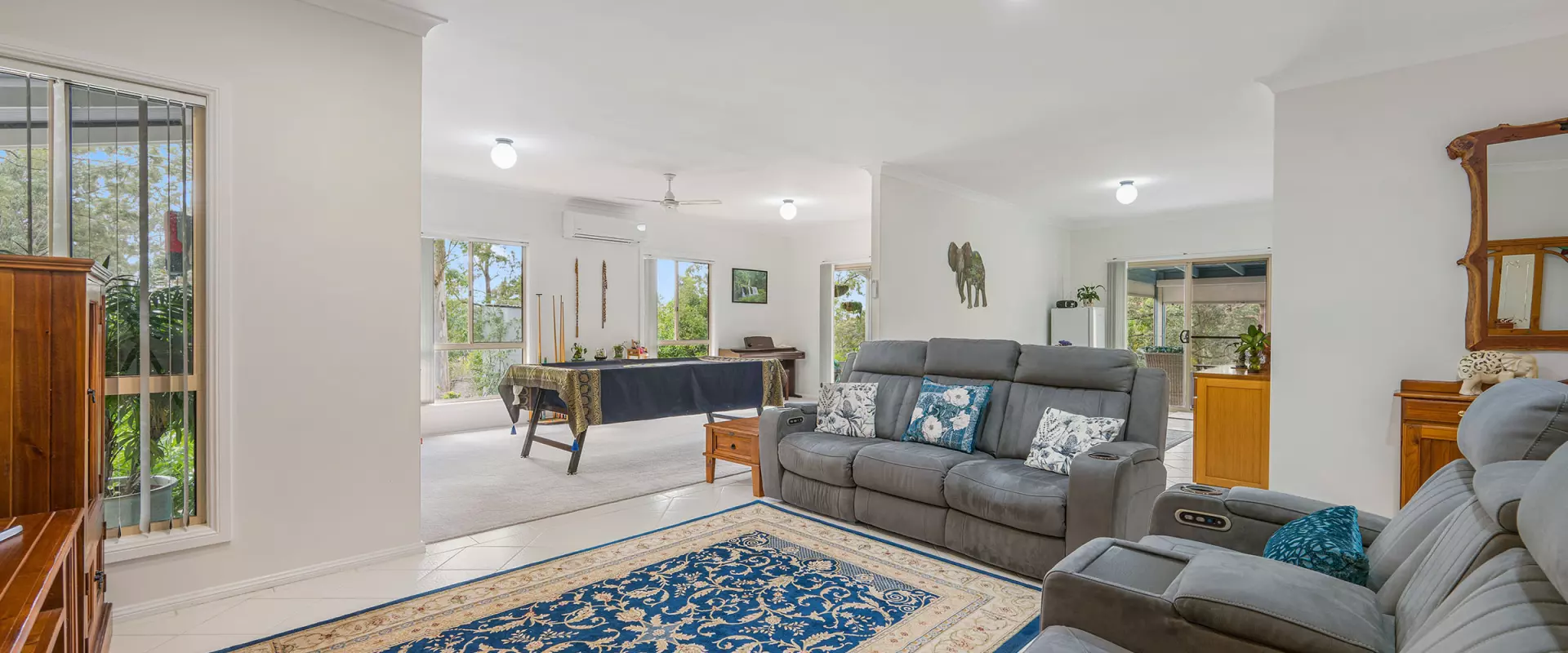 High ceilings feature throughout the flowing floorplan that offers a substantial air-conditioned open plan living/dining zone, separate lounge area with a casual dining area adjoining the sparkling kitchen with walk-in pantry.