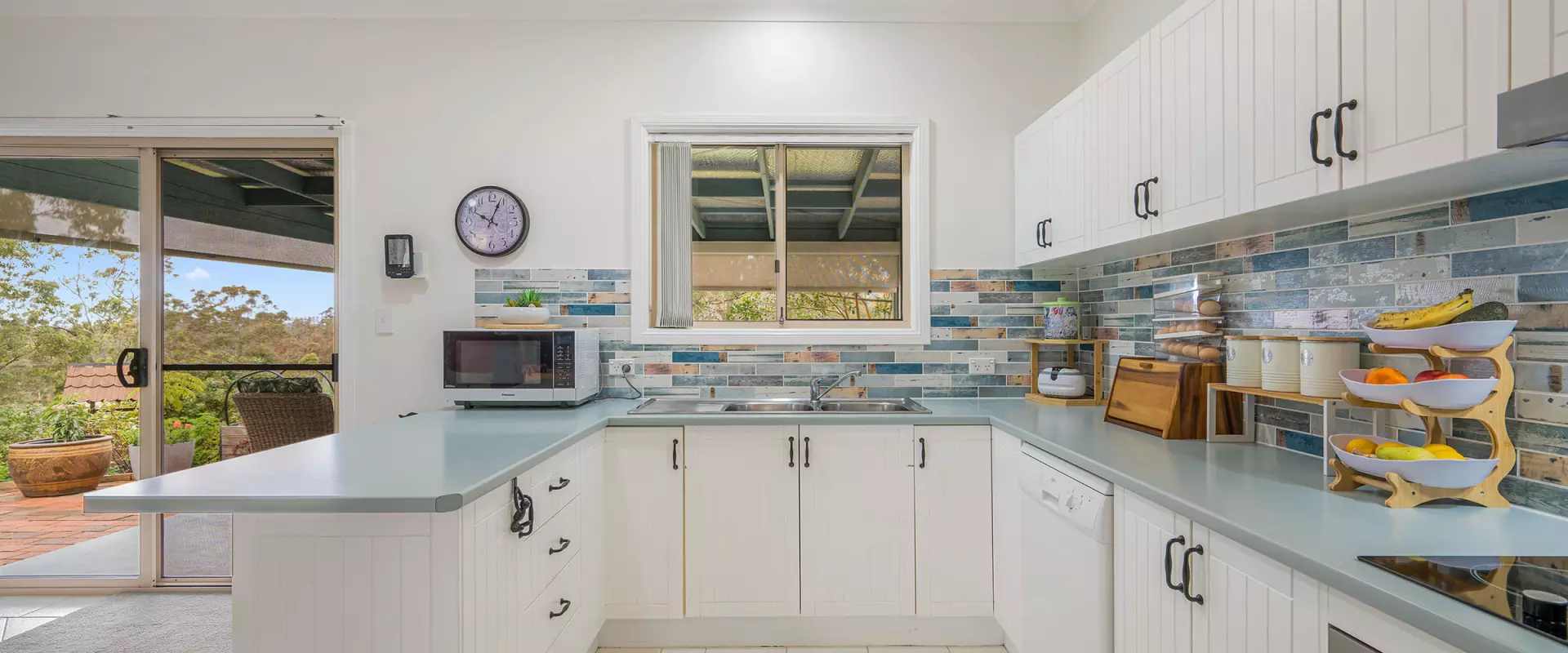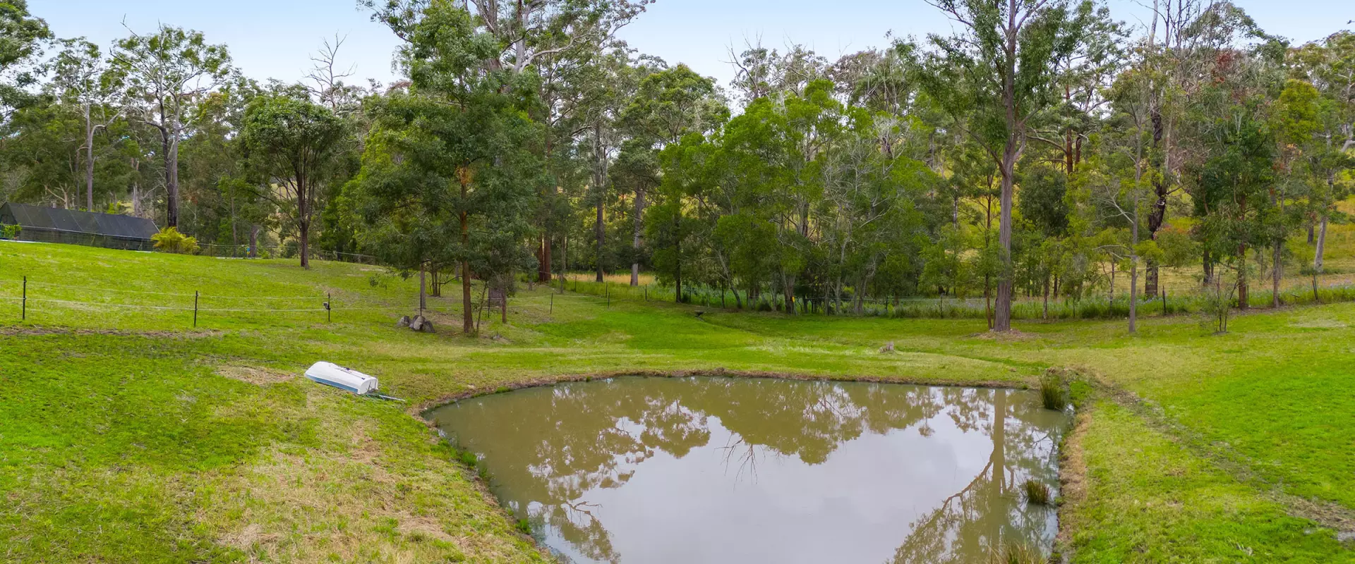 The cleared land at the rear slopes down to a dam and is fully fenced for hobby animals as well as a thriving vegetable and fruit growing area.