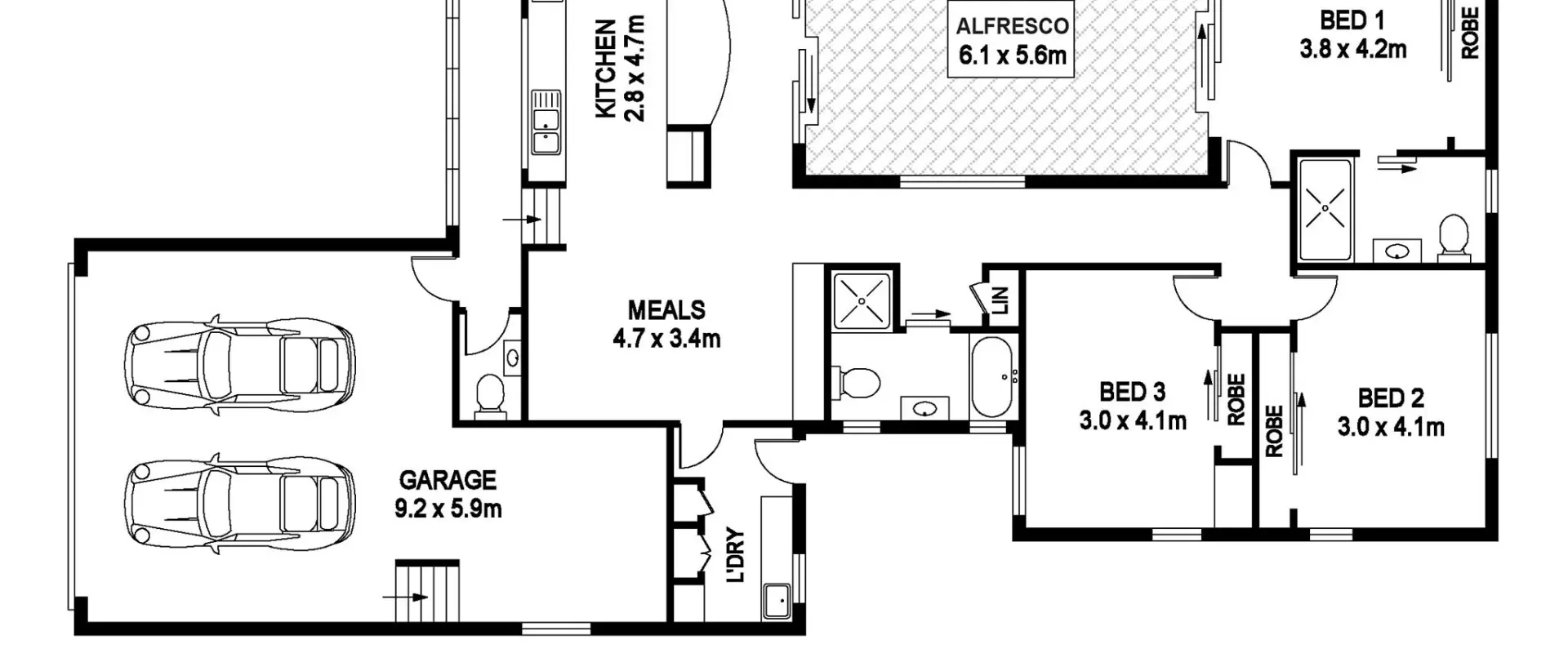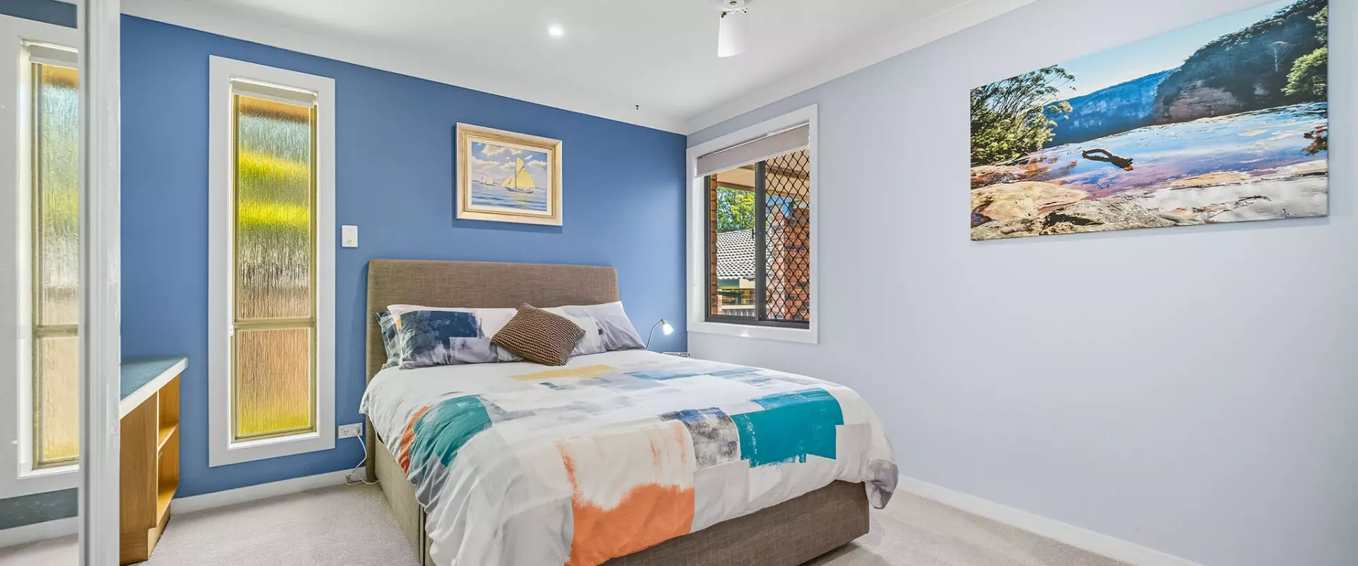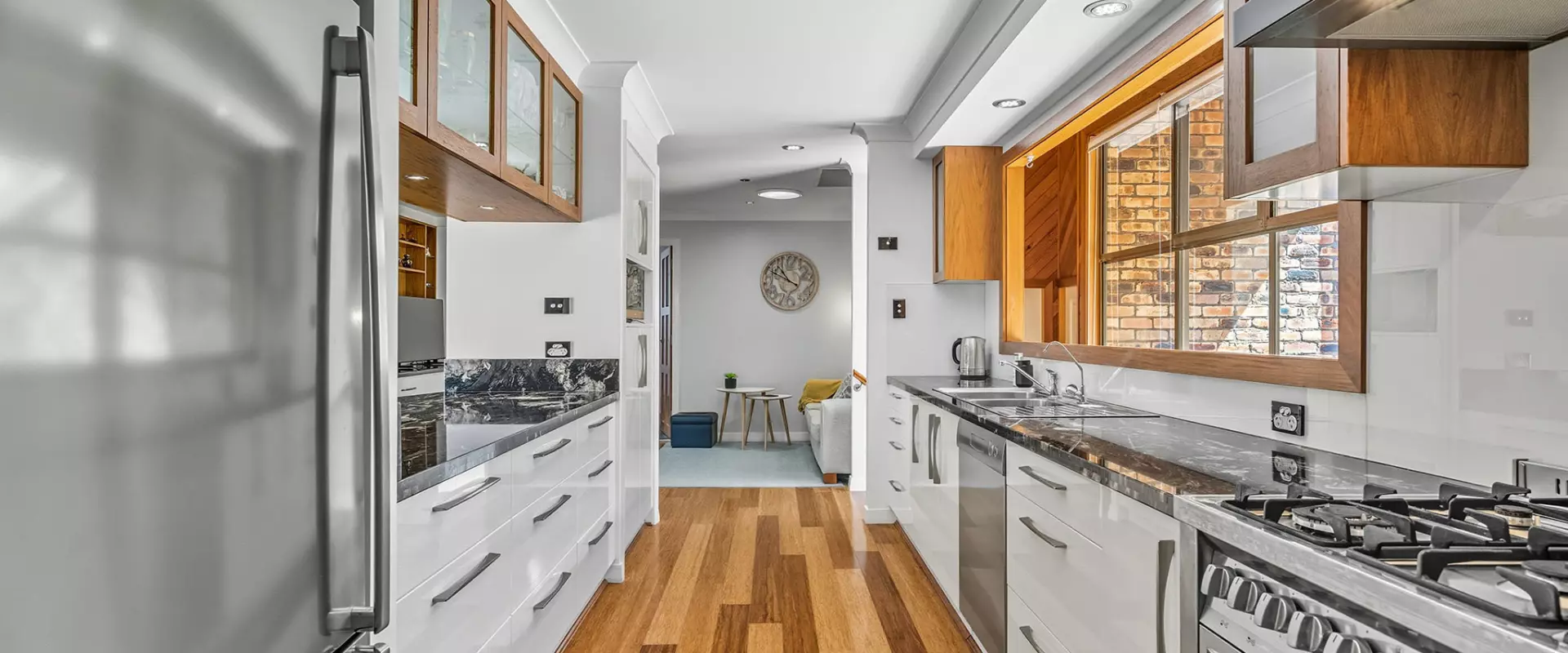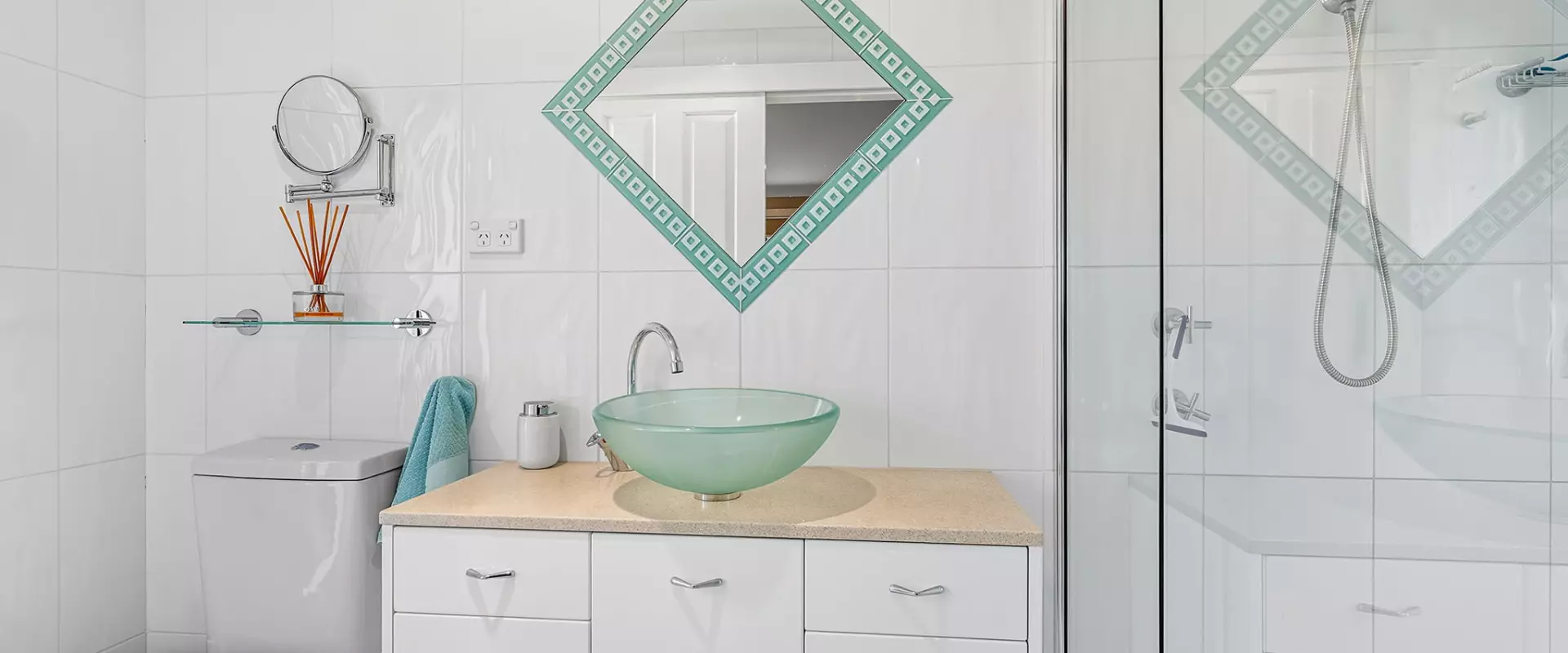 The primary bedroom has a sparkling ensuite and built-in wardrobes with a sliding door to outside. The other two bedrooms have built-in wardrobes and are serviced by the main bathroom with separate bath and shower. There is also a powder room with separate toilet and vanity.