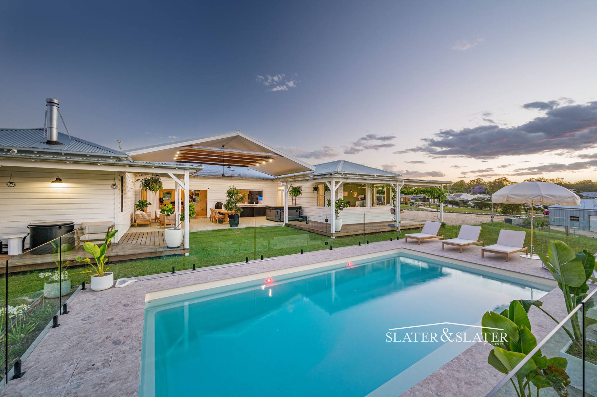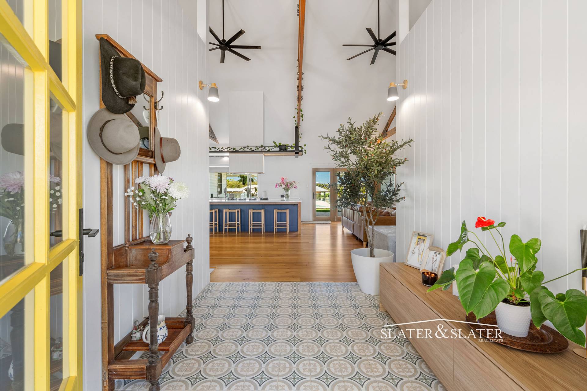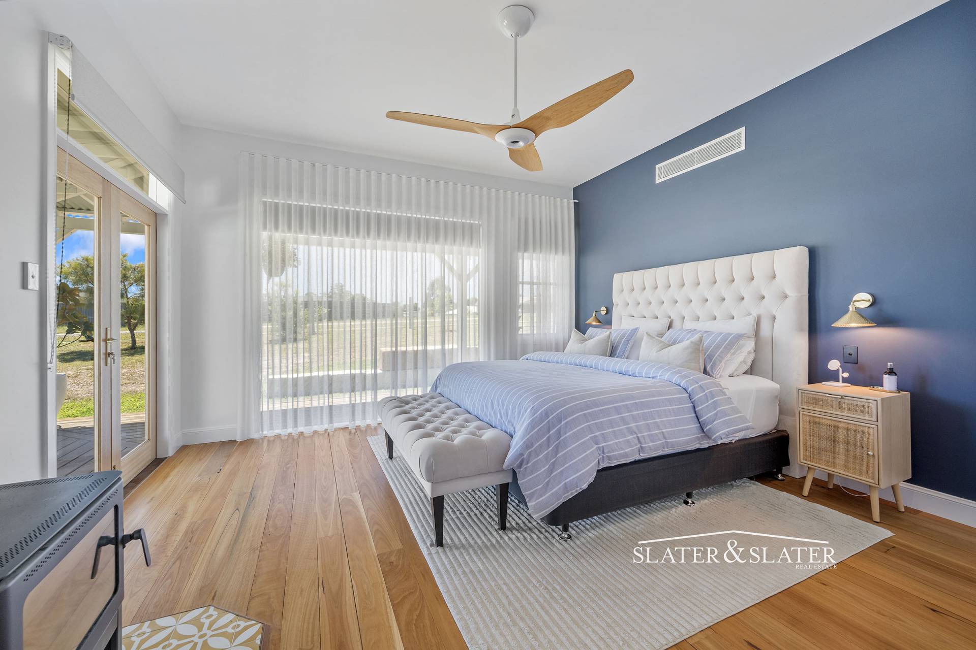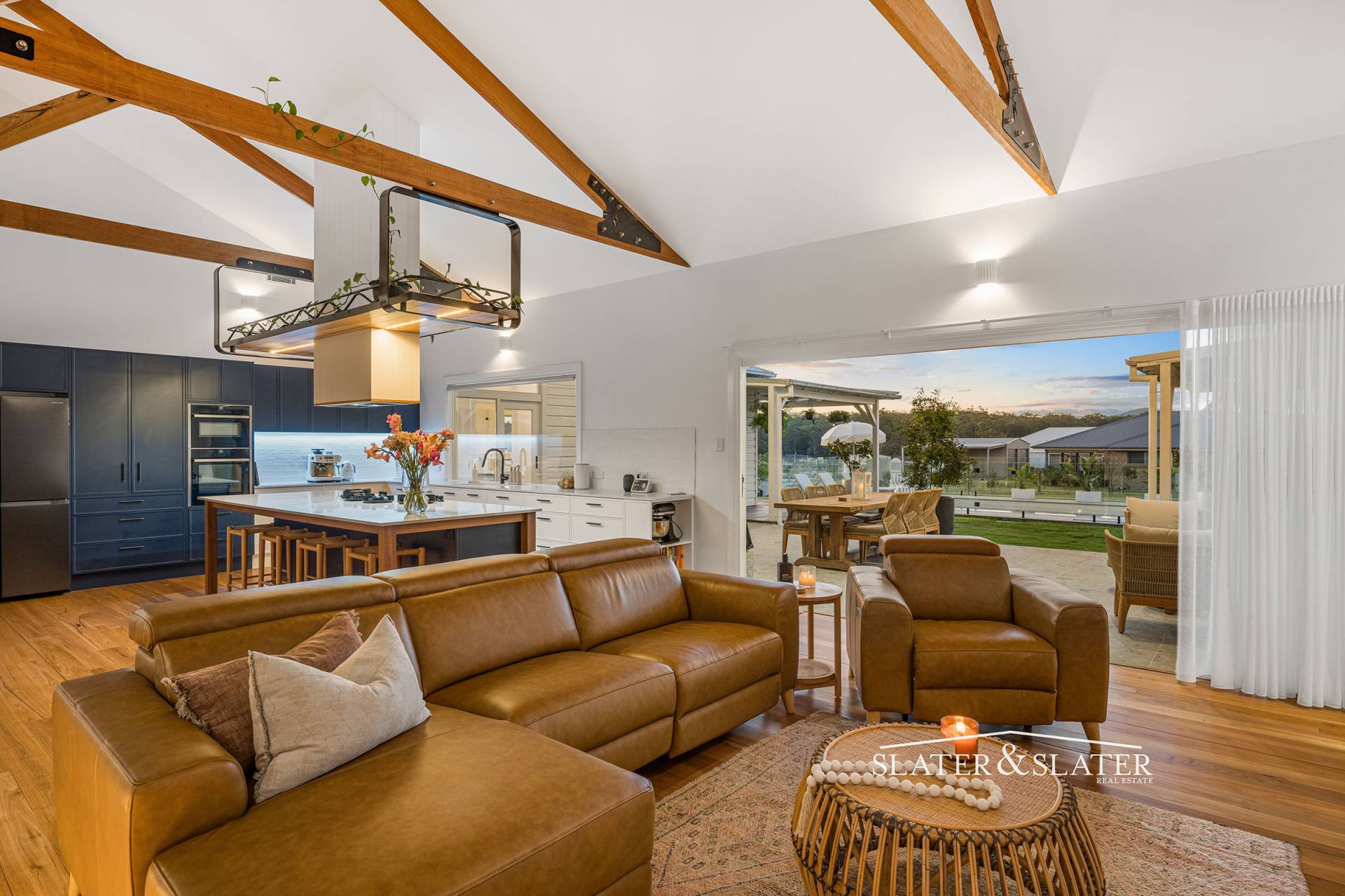 The expansive main homestead blends classic and modern with impeccable presentation showcasing the flowing floor-plan and generous dimensions. Soaring ceilings with exposed trusses feature in the main living, dining and kitchen zone. This impressive space offers indoor/outdoor living and entertaining as it flows out through bi-fold doors to the substantial al-fresco area with built in outdoor kitchen, spa and in-ground pool.