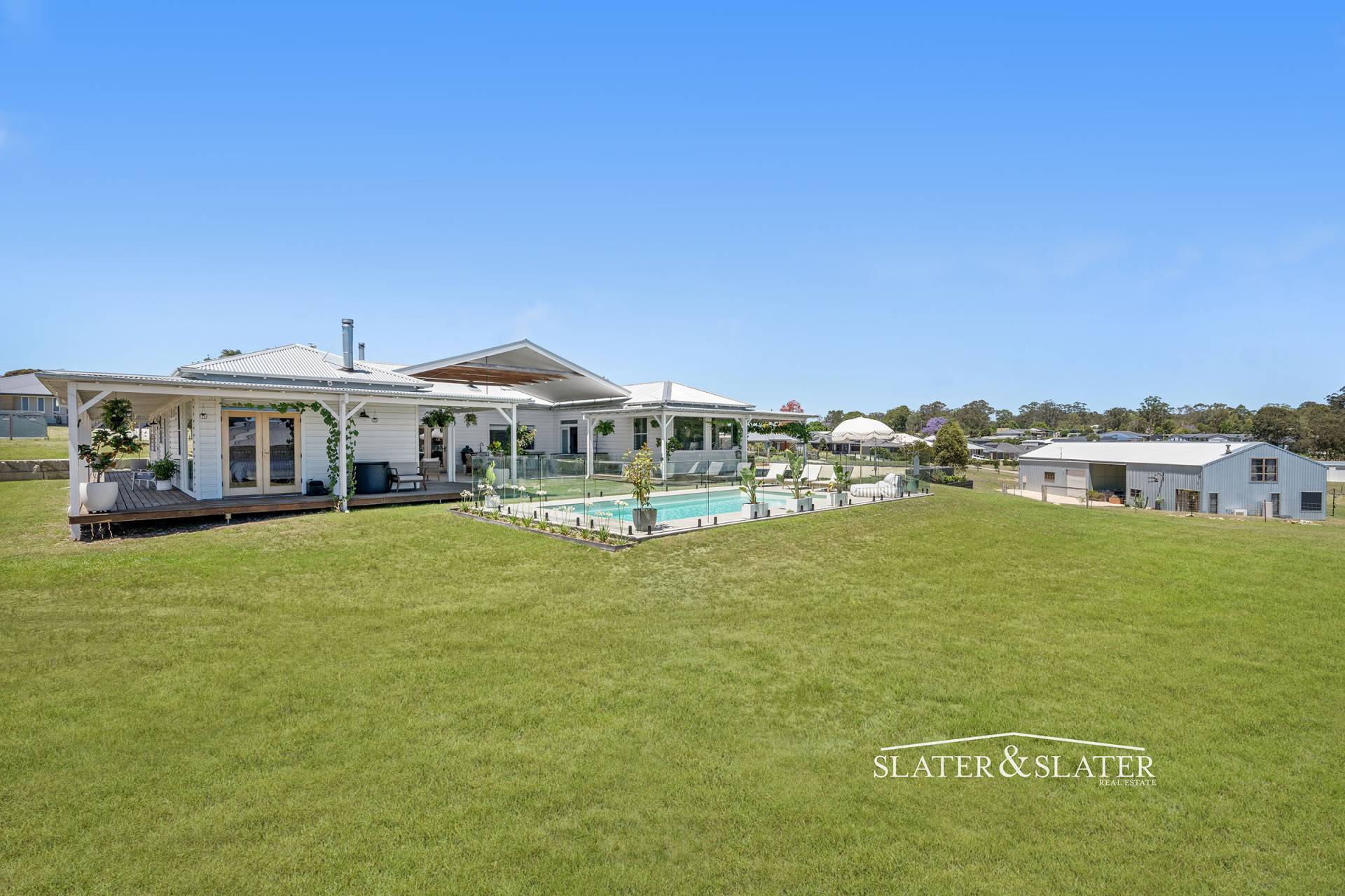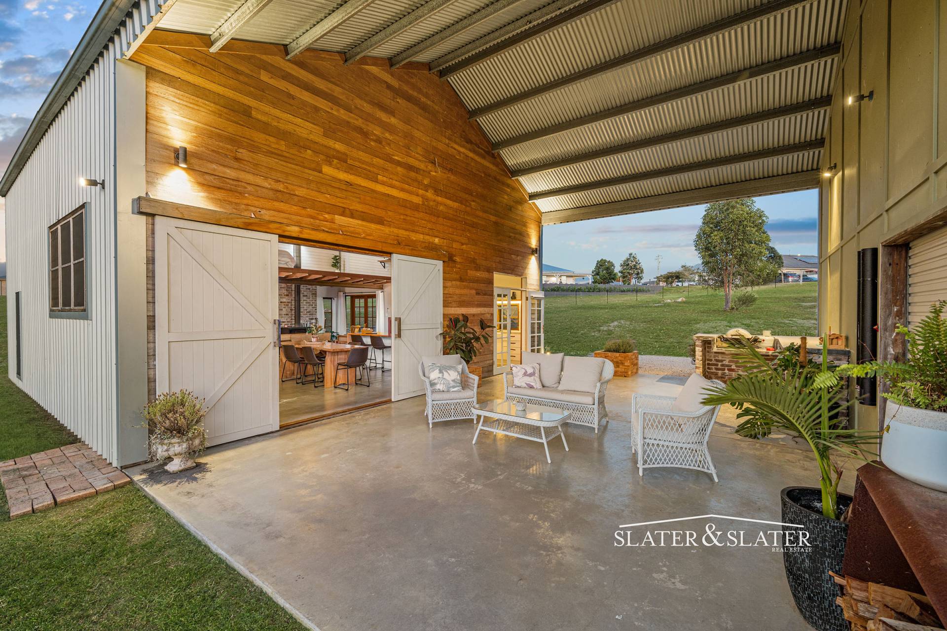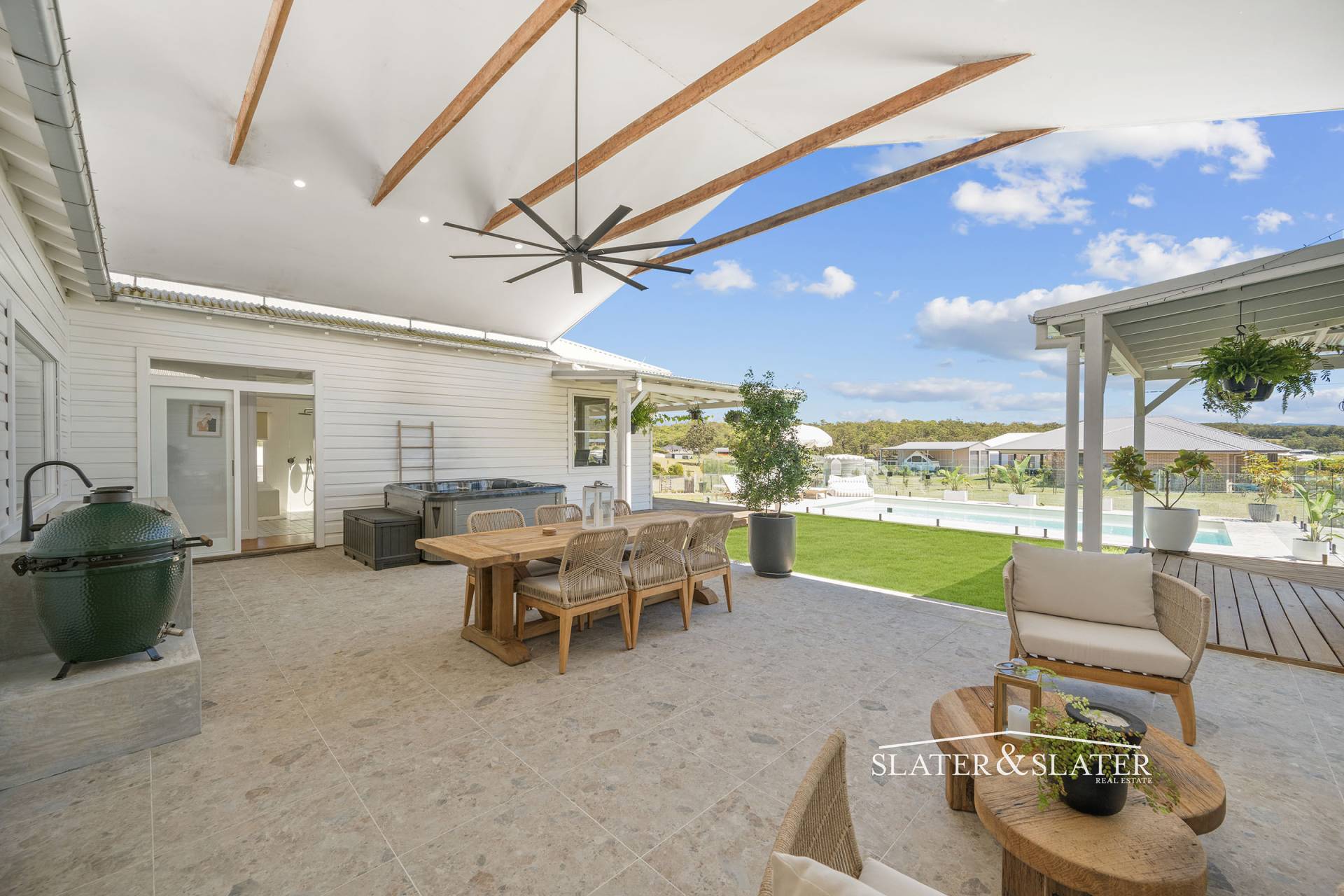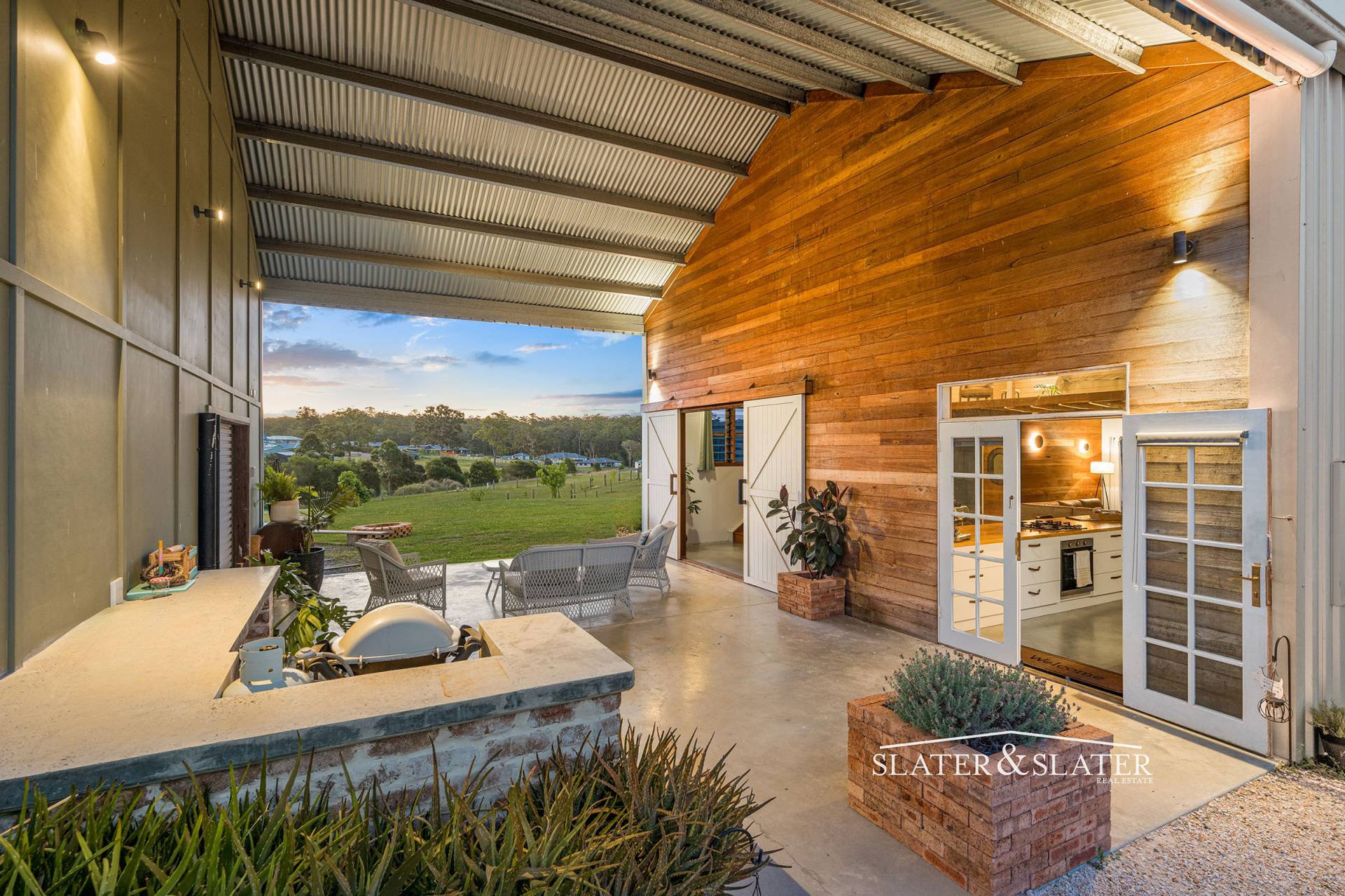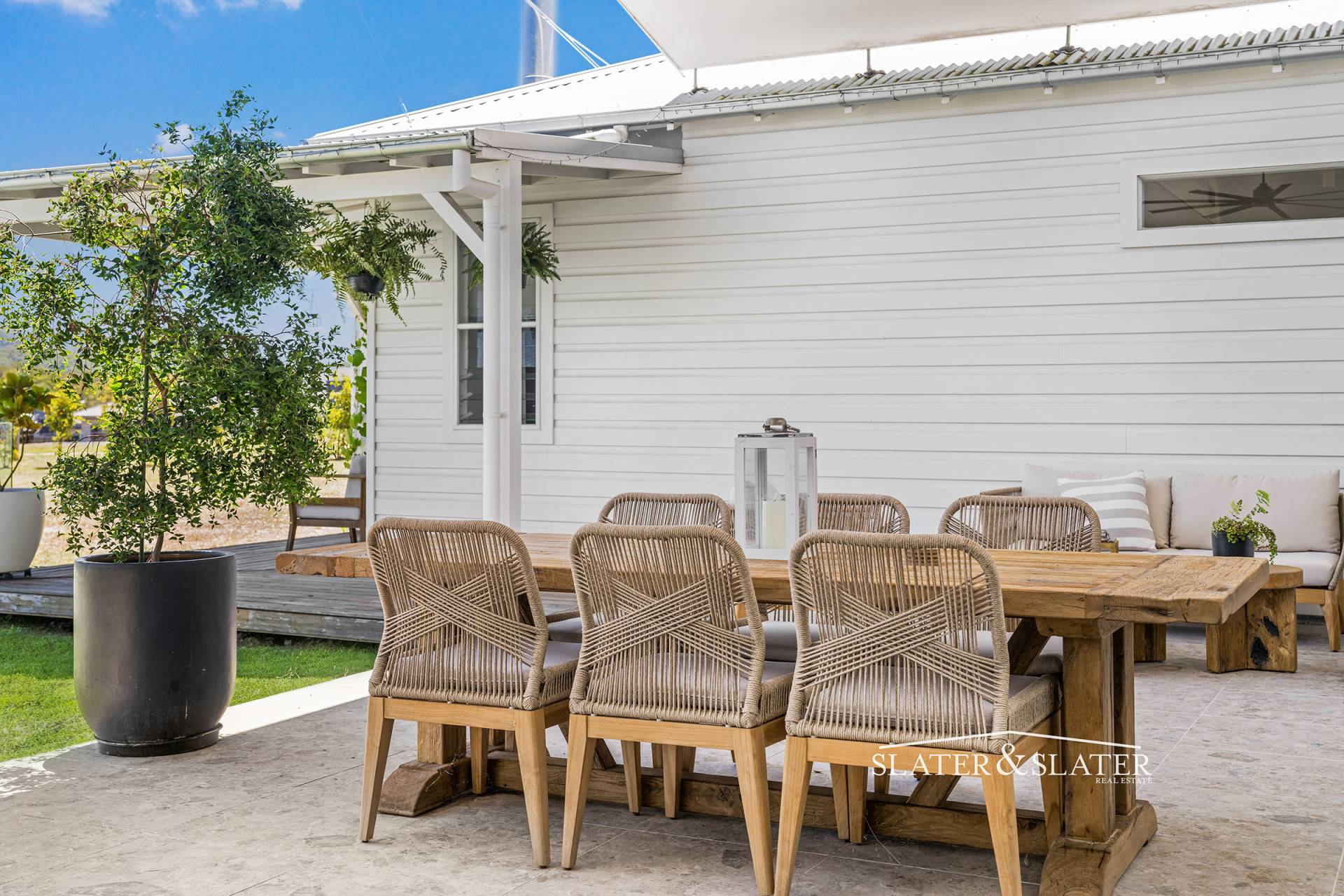 The expansive main homestead blends classic and modern with impeccable presentation showcasing the flowing floor-plan and generous dimensions. Soaring ceilings with exposed trusses feature in the main living, dining and kitchen zone. This impressive space offers indoor/outdoor living and entertaining as it flows out through bi-fold doors to the substantial al-fresco area with built in outdoor kitchen, spa and in-ground pool.