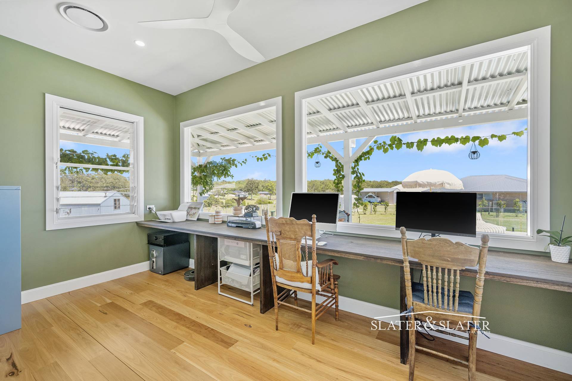 One wing of the home includes a media room, bedroom and master suite with dressing room and ensuite. The other wing has three further bedrooms, impressive second bathroom, laundry and generous dedicated study overlooking the rear grounds - perfect for work-from-home needs.