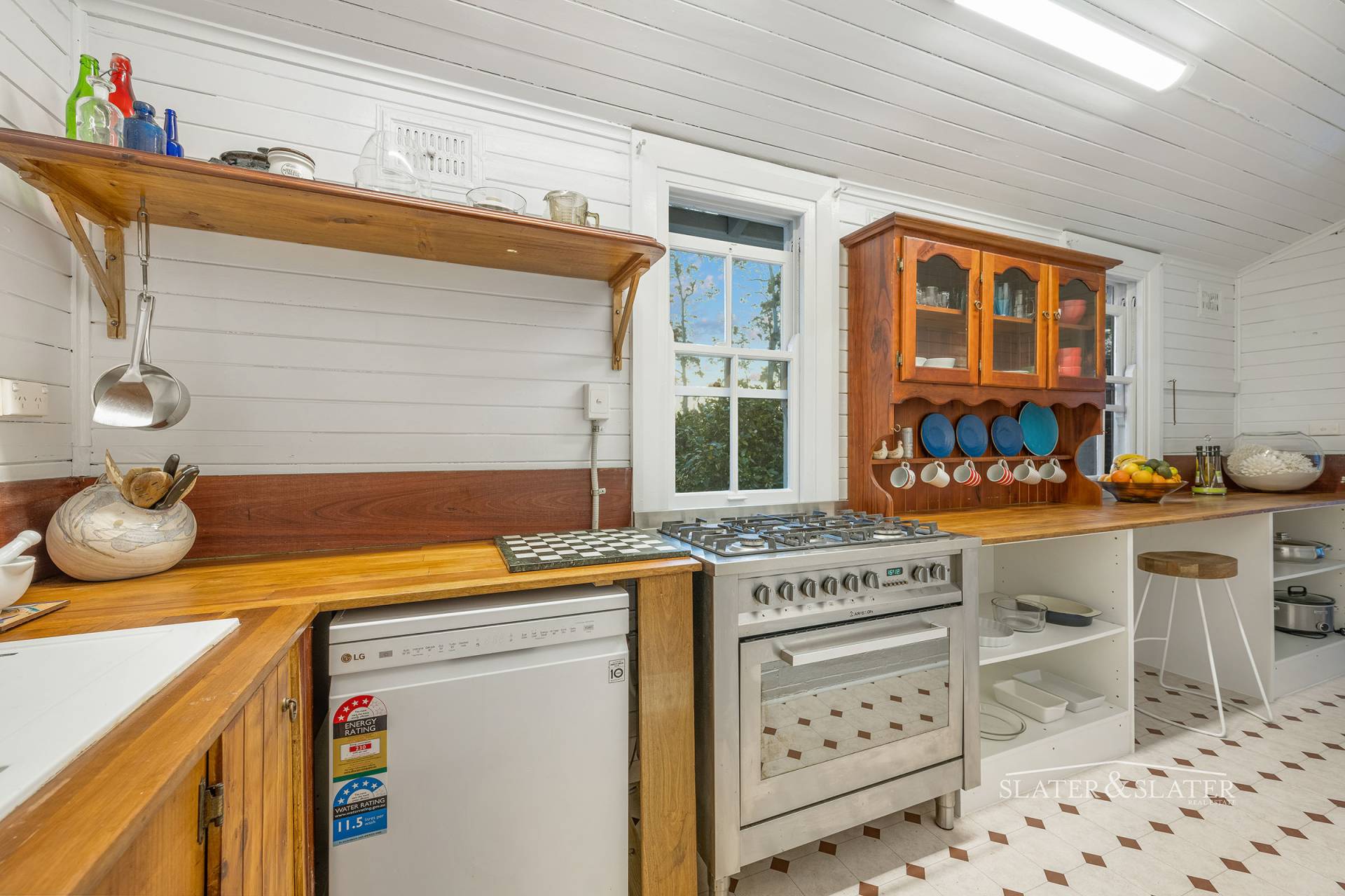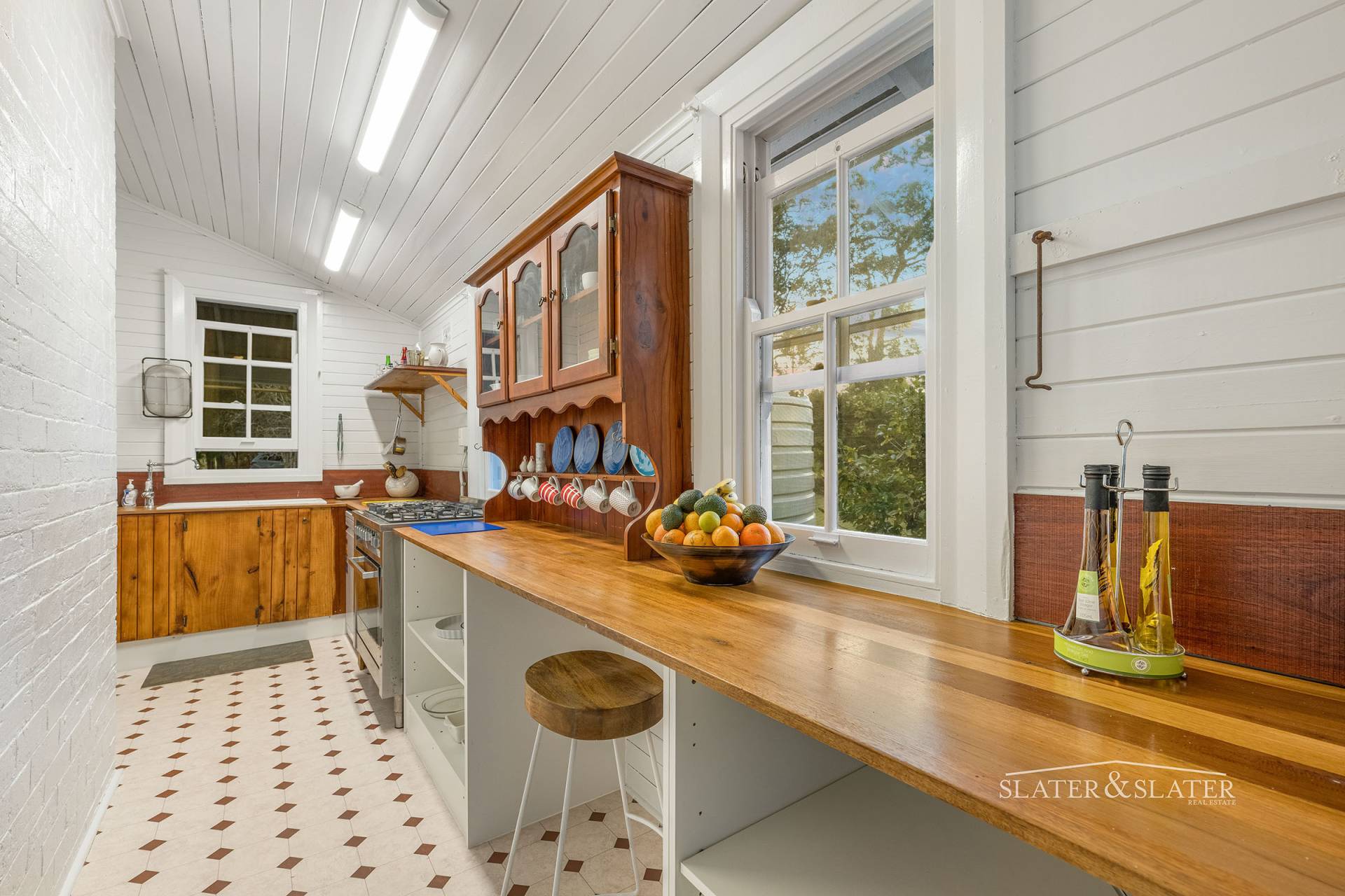 The adjoining former schoolhouse would be ideal as guest accomodation and/or as an opportunity to accomodate extended family members. It offers two bedrooms, open plan living/dining, galley kitchen, bathroom with laundry and a study. The interior is lined with timber panelling and features high ceilings, brand new air conditioner, original brick fireplace and verandahs on two sides.