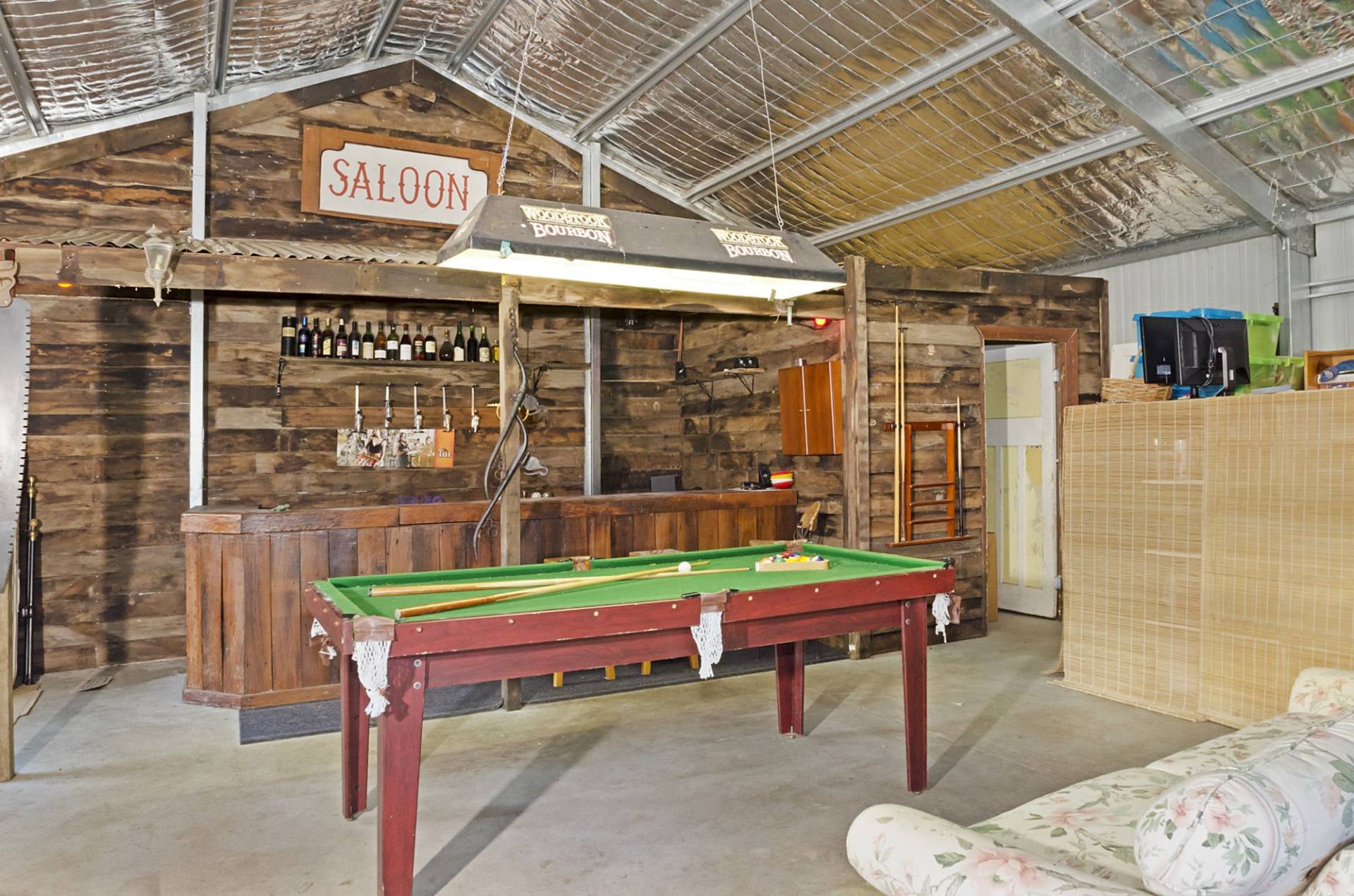 A 12m x 12m double bay shed provides ample storage for vehicles and equipment and currently has a bar and games area at one end.